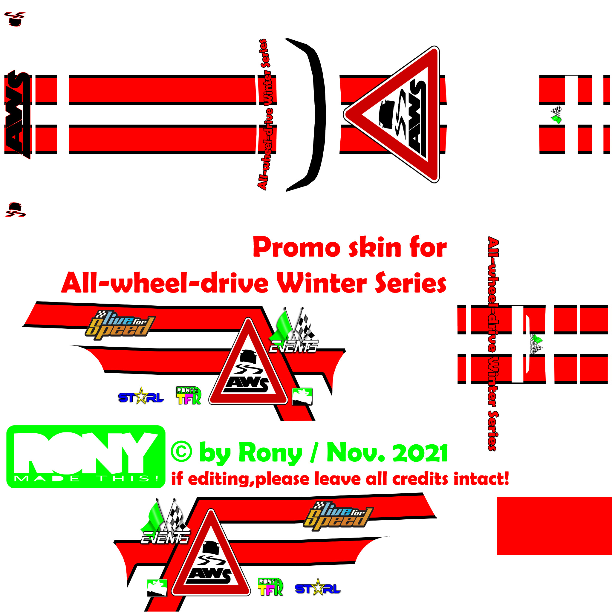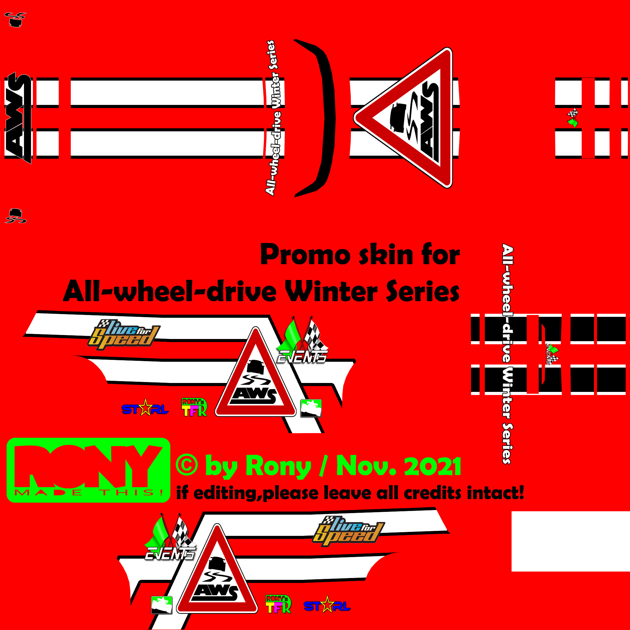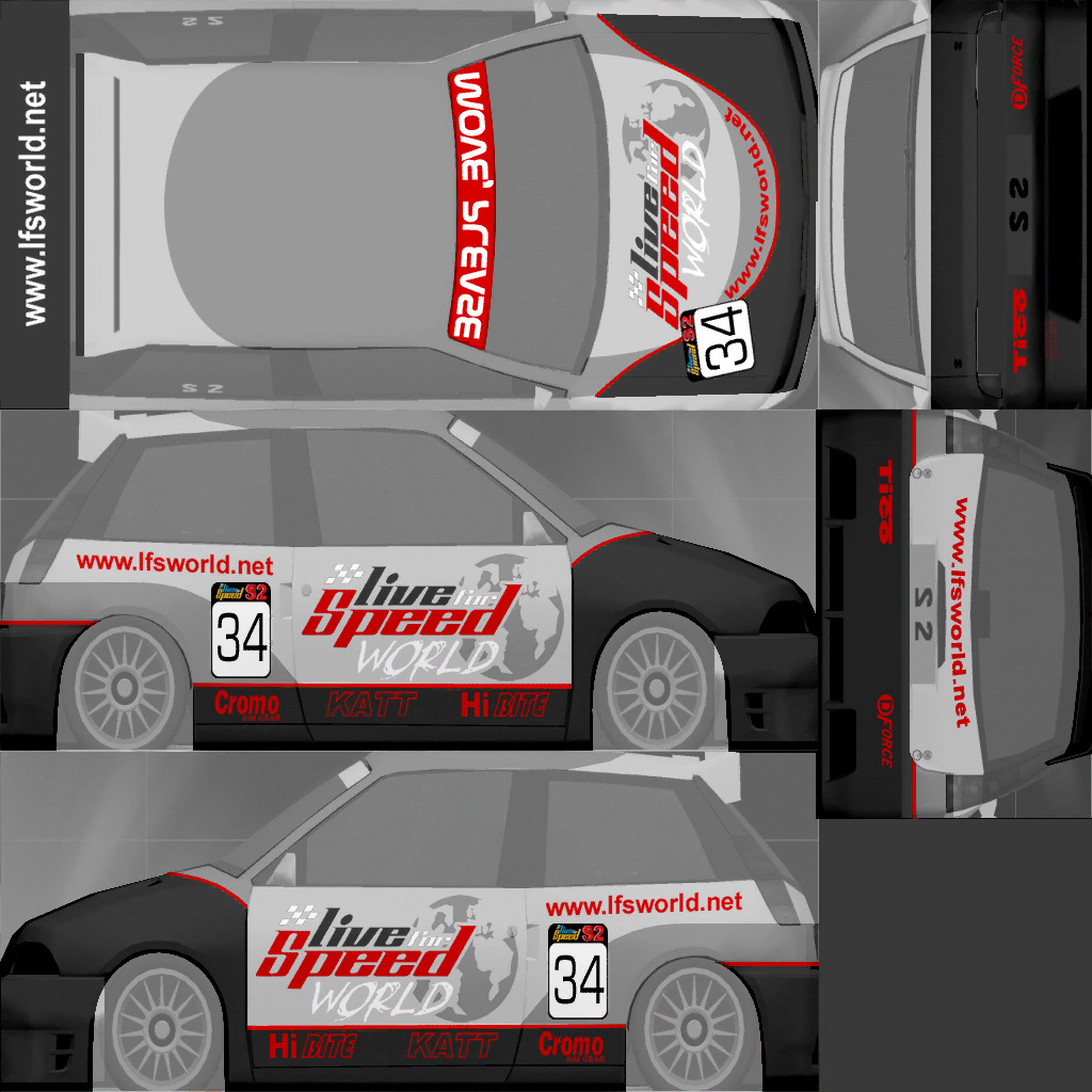 Skins of default XFR (renamed to C3600B_skinname.jpg) fit well to this car,just note that the missing grill and hood scoop might leave black mask colored painting and increased arches might crop some livery parts away. Besides default skin,3 other skins are provided - AWS promo skin in 3 different colors,RTFR promo skin and the good old grey LFSW skin (credits to the author,whoever he/she is).