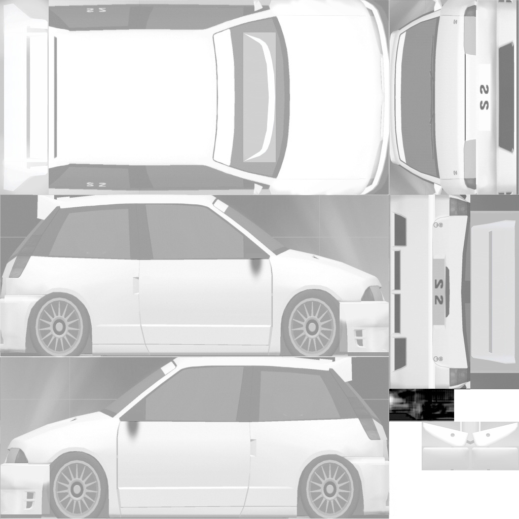 The LFS Vehicle editor provides options to create skin templates. A template helps you create skins for a vehicle by giving you the outlines of the vehicle's shape, within which you can draw the livery that will be drawn onto the vehicle.