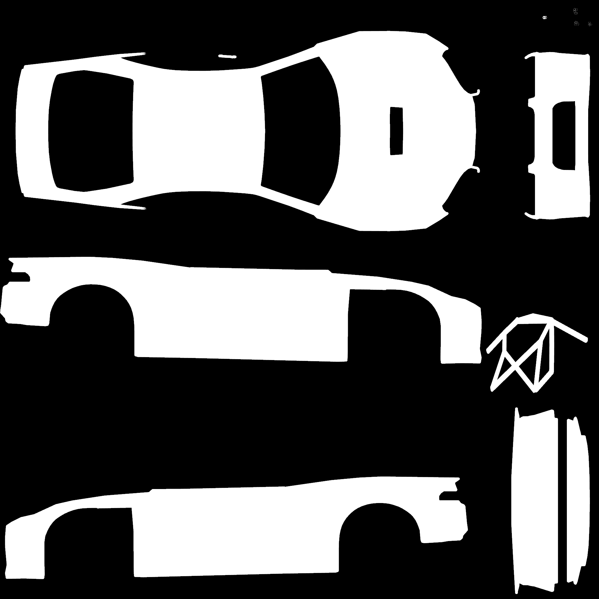 The LFS Vehicle editor provides options to create skin templates. A template helps you create skins for a vehicle by giving you the outlines of the vehicle's shape, within which you can draw the livery that will be drawn onto the vehicle.