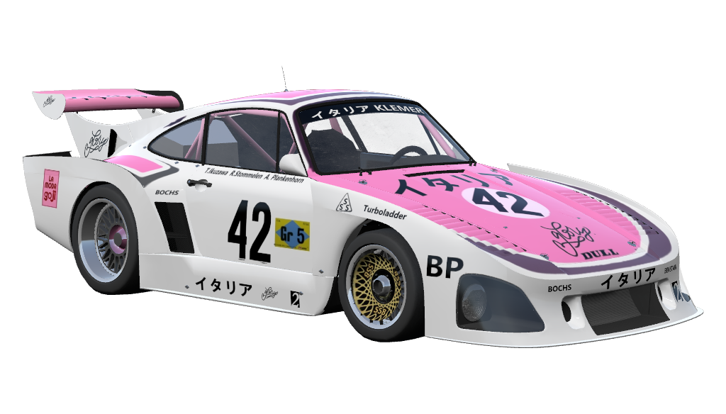 A Group 5 Special Production Racing car which has won 24 Hours of Le Mans in 1979 being the first rear-engine race car to win Le Mans. It has a 3.2L flat six producing 755 BHP with redline of 8500 rpm through the rear wheels with a manual H-pattern gearbox. It weights just 1029 kg (2269 lbs) with 43.3 in the front and 56.7 in the rear weight distribution.