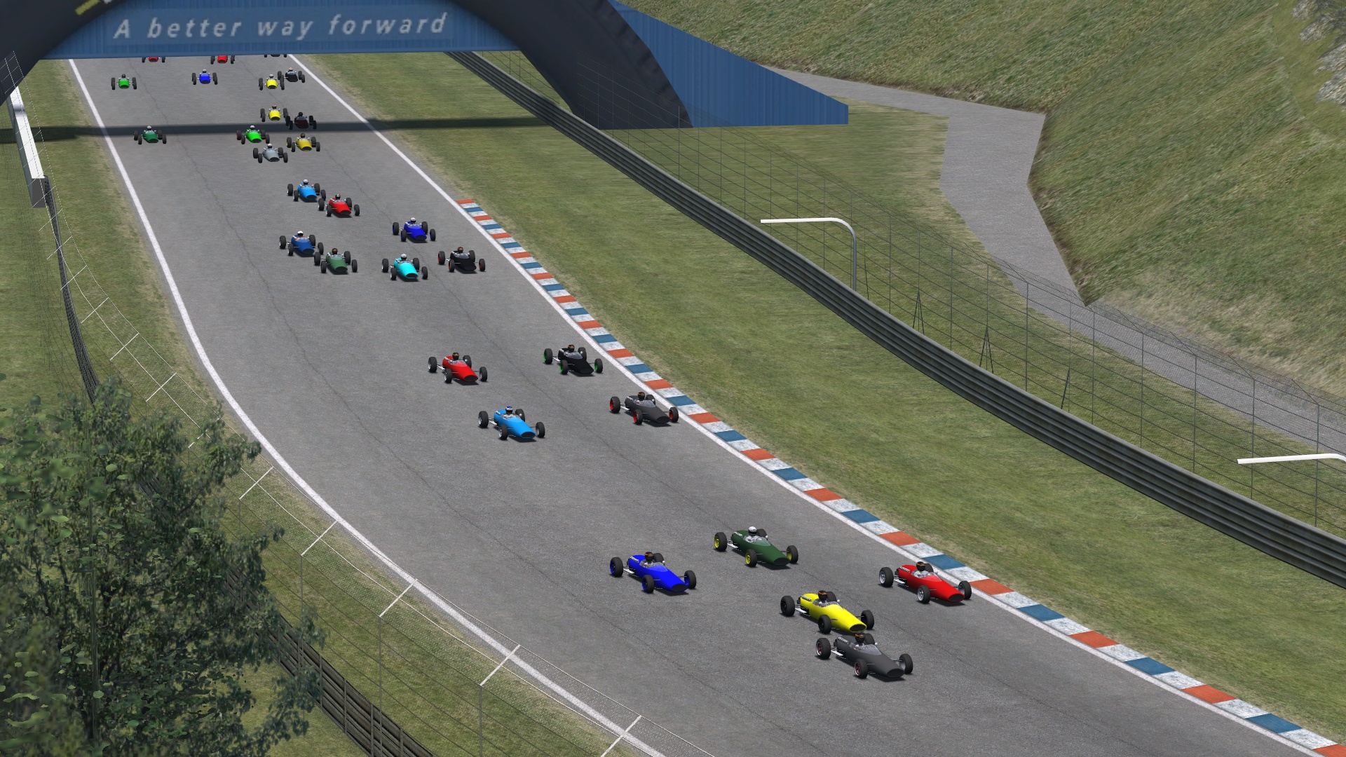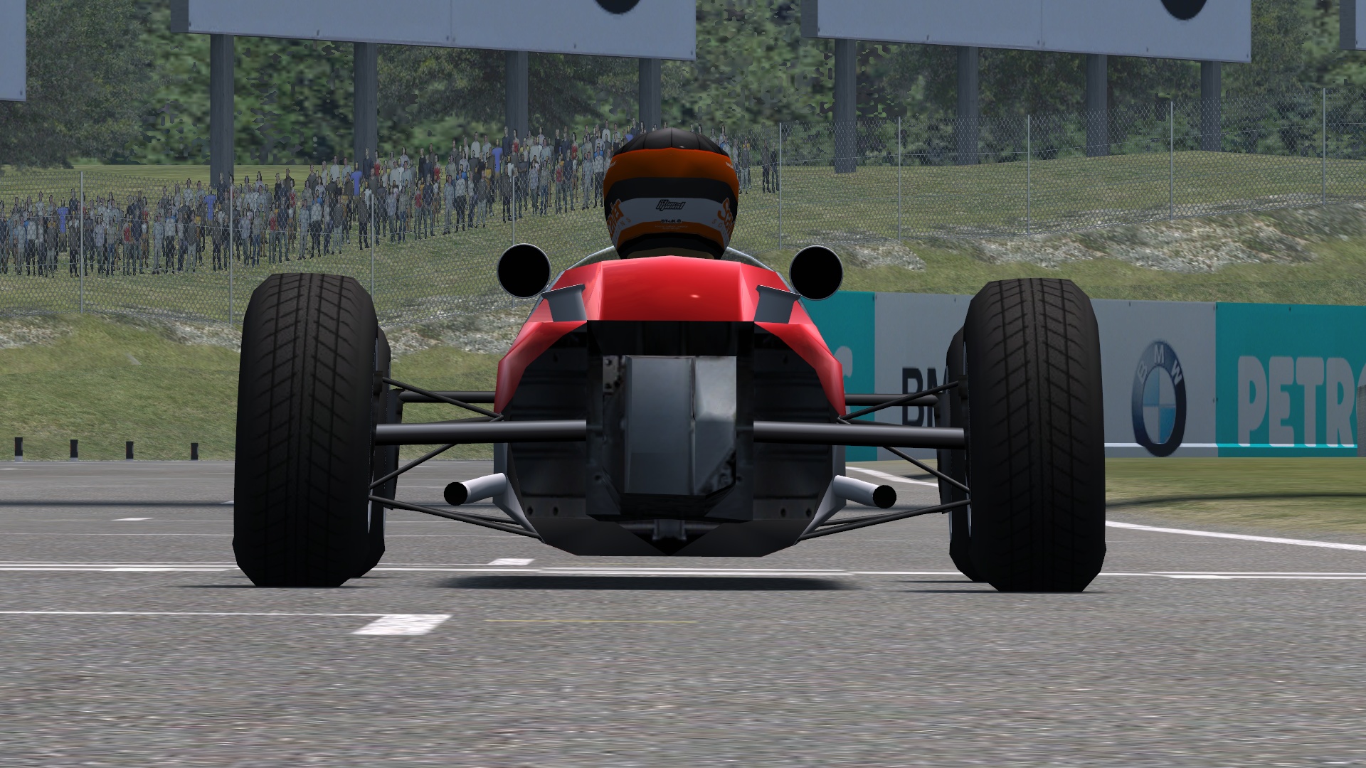 Fictive F1 golden era vehicle. No aero, no grippy tyres, just an angry V12 behind your back and a lot of fun driving it.