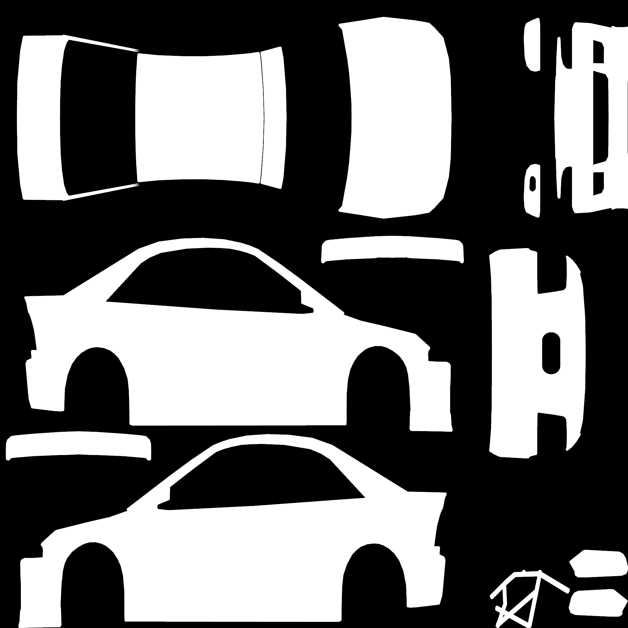 The LFS Vehicle editor provides options to create skin templates. A template helps you create skins for a vehicle by giving you the outlines of the vehicle's shape, within which you can draw the livery that will be drawn onto the vehicle.