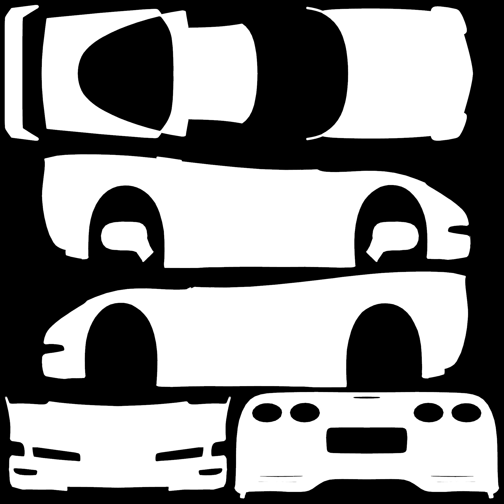 The LFS Vehicle editor provides options to create skin templates. A template helps you create skins for a vehicle by giving you the outlines of the vehicle's shape, within which you can draw the livery that will be drawn onto the vehicle.