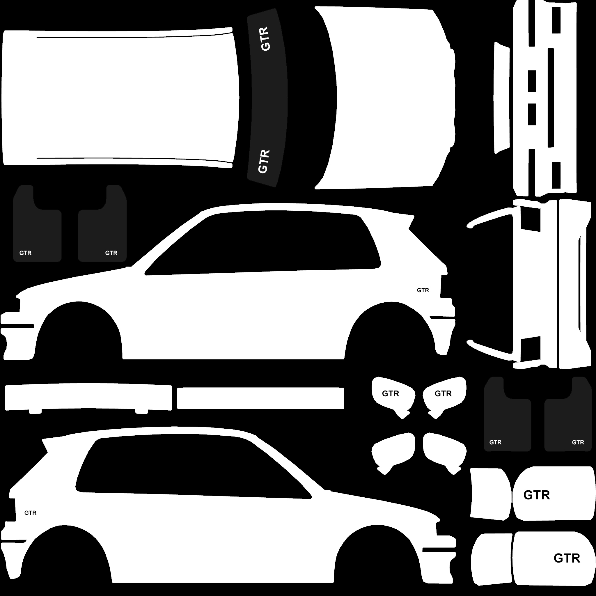 The LFS Vehicle editor provides options to create skin templates. A template helps you create skins for a vehicle by giving you the outlines of the vehicle's shape, within which you can draw the livery that will be drawn onto the vehicle.