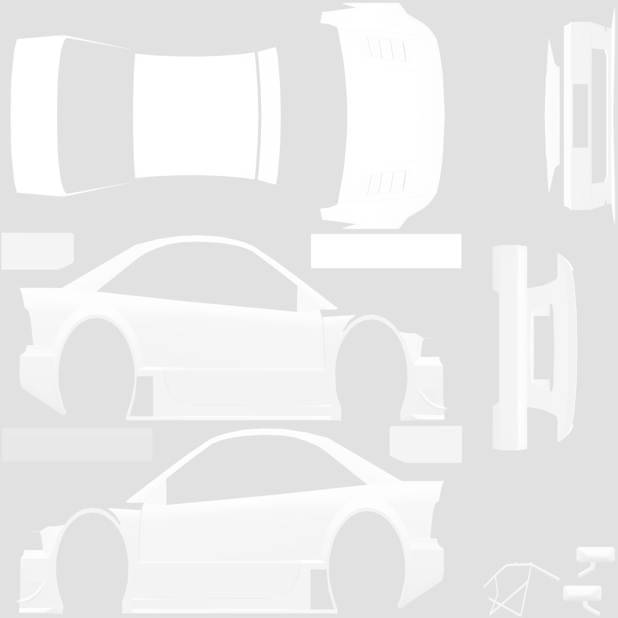 The LFS Vehicle editor provides options to create skin templates. A template helps you create skins for a vehicle by giving you the outlines of the vehicle's shape, within which you can draw the livery that will be drawn onto the vehicle.