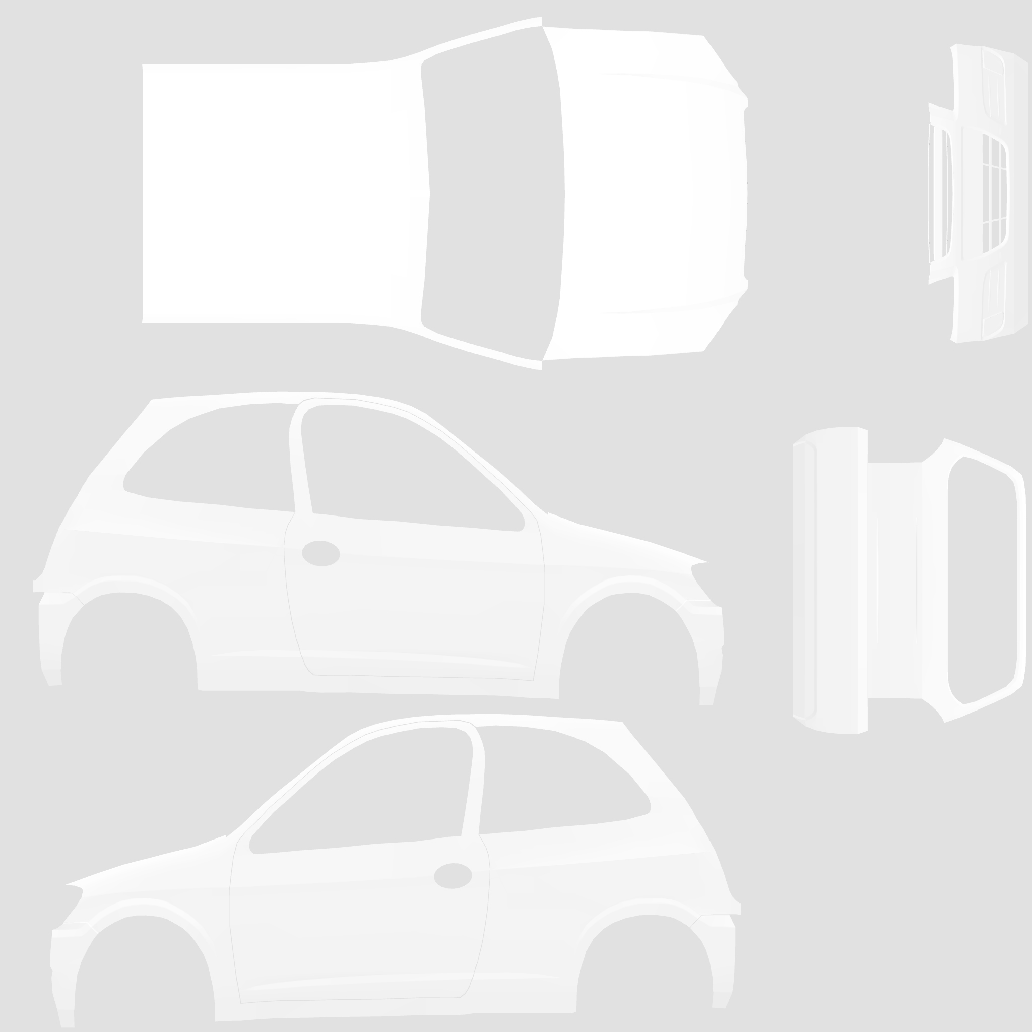 The LFS Vehicle editor provides options to create skin templates. A template helps you create skins for a vehicle by giving you the outlines of the vehicle's shape, within which you can draw the livery that will be drawn onto the vehicle.