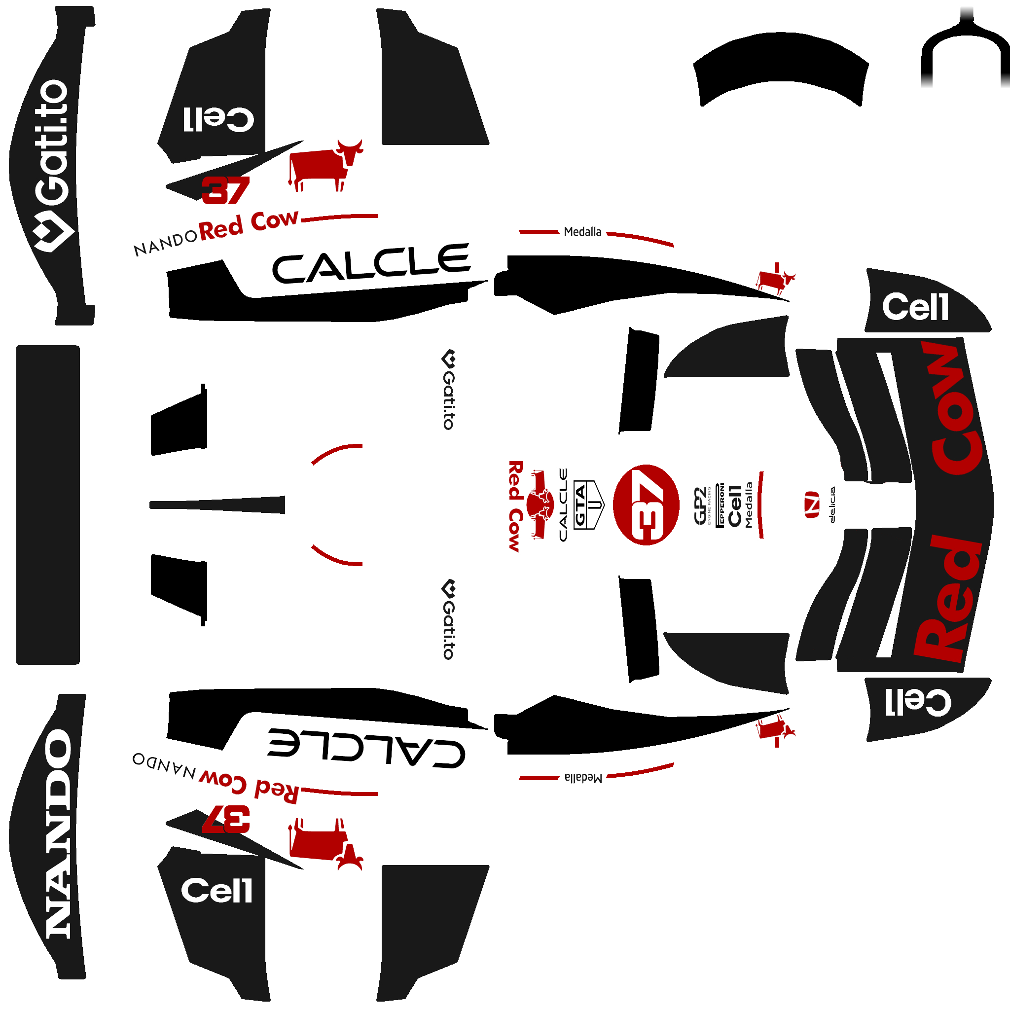 The LFS Vehicle editor provides options to create skin templates. A template helps you create skins for a vehicle by giving you the outlines of the vehicle's shape, within which you can draw the livery that will be drawn onto the vehicle.