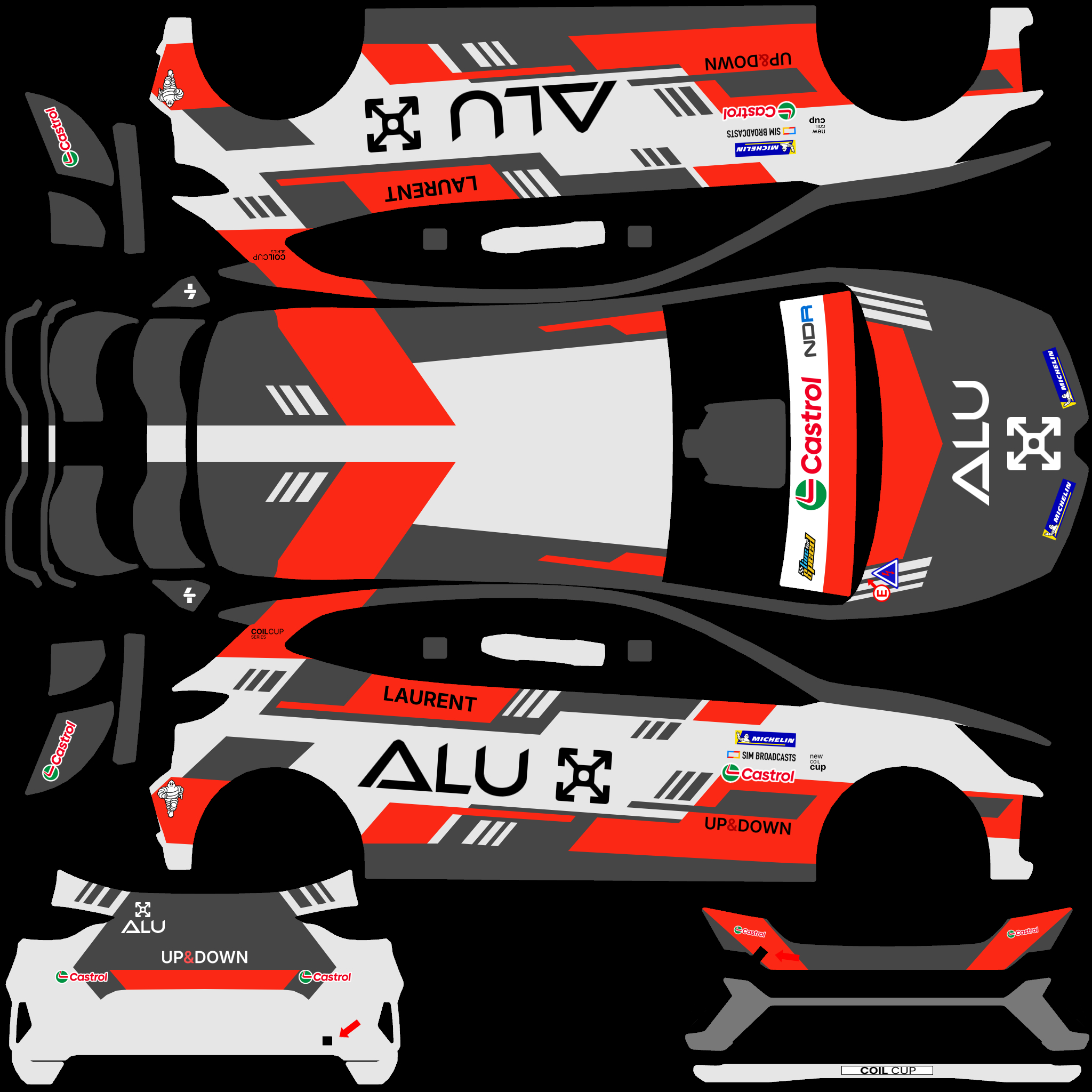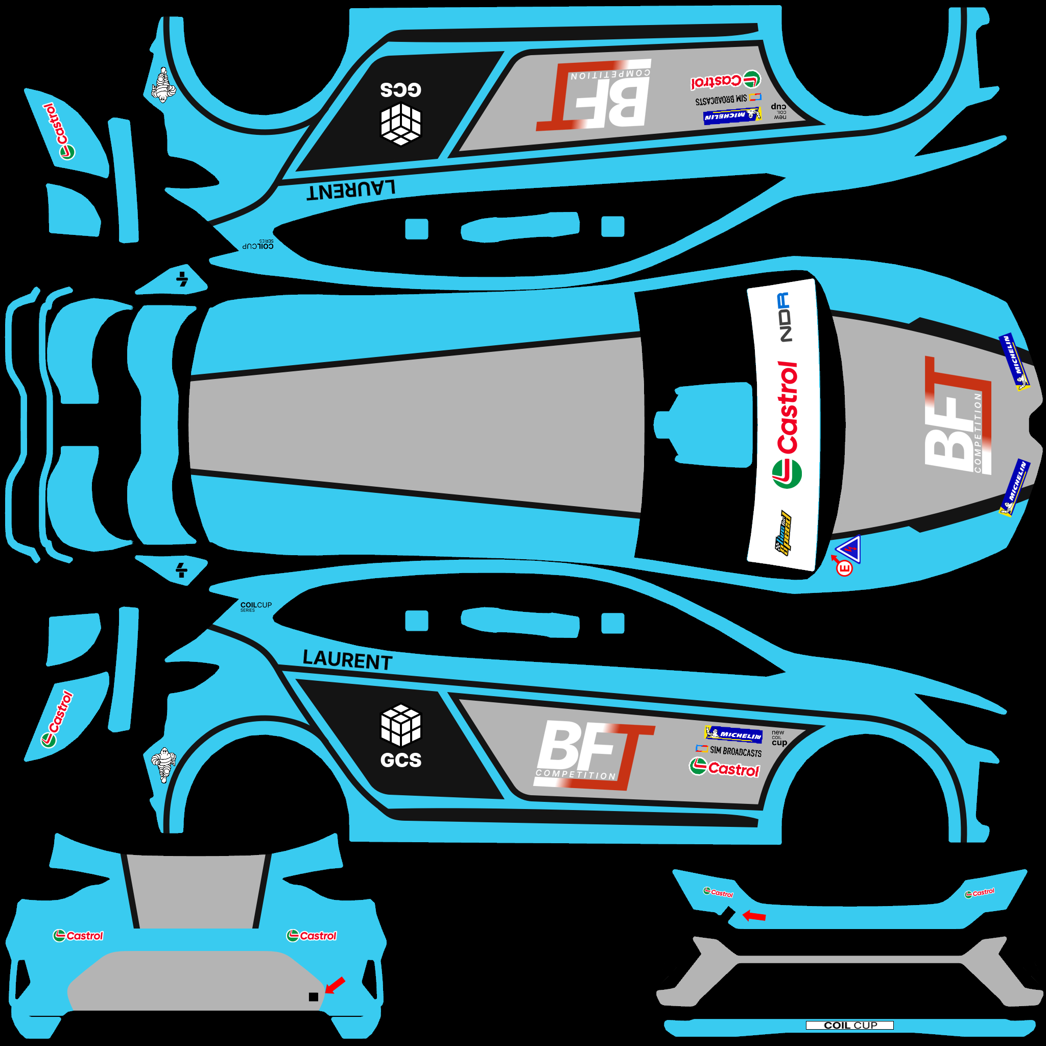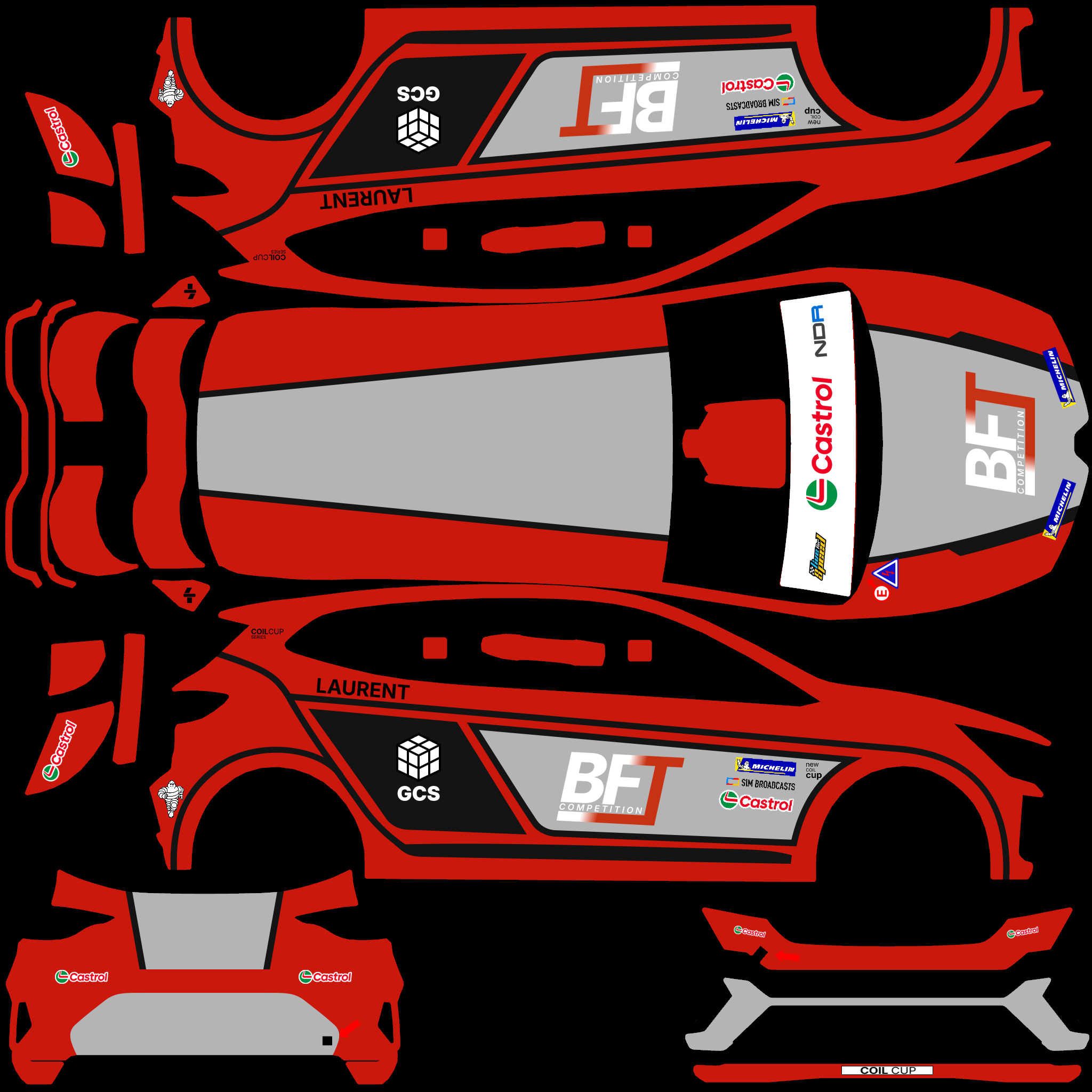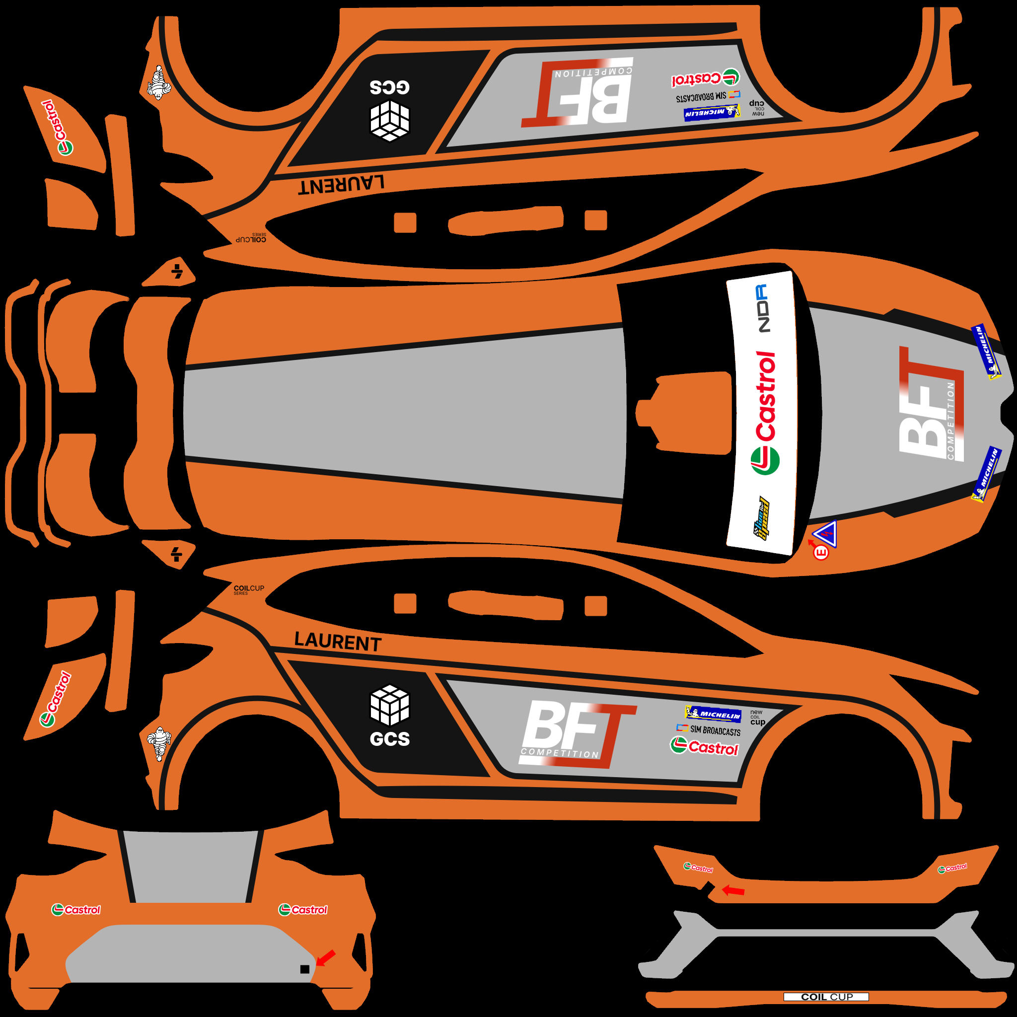 The LFS Vehicle editor provides options to create skin templates. A template helps you create skins for a vehicle by giving you the outlines of the vehicle's shape, within which you can draw the livery that will be drawn onto the vehicle.