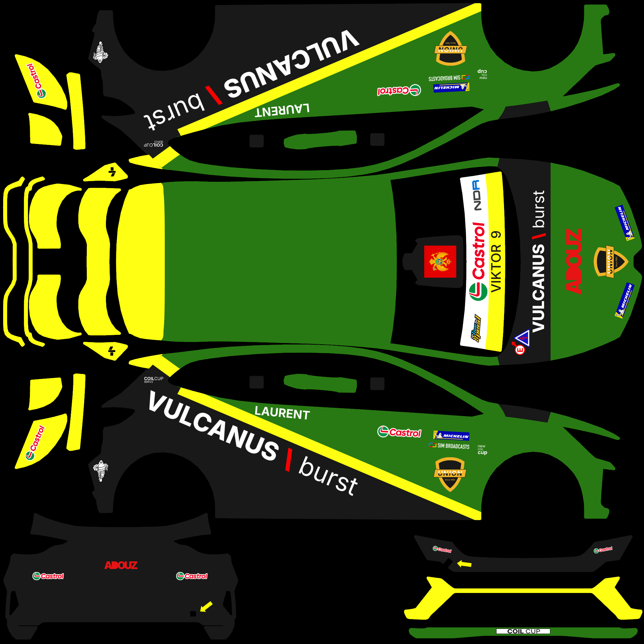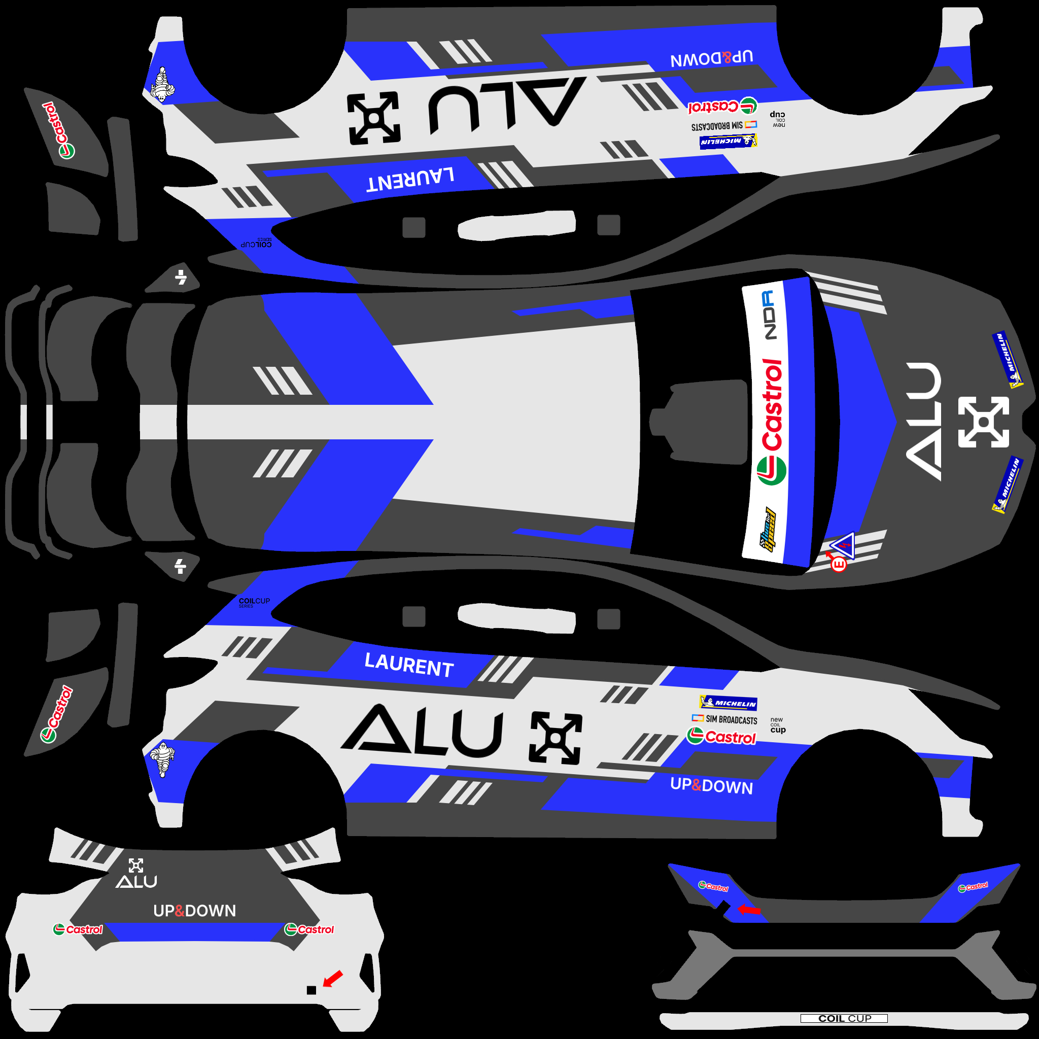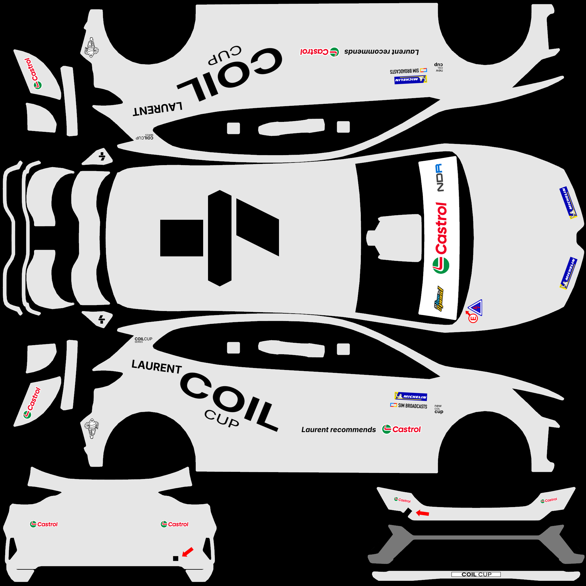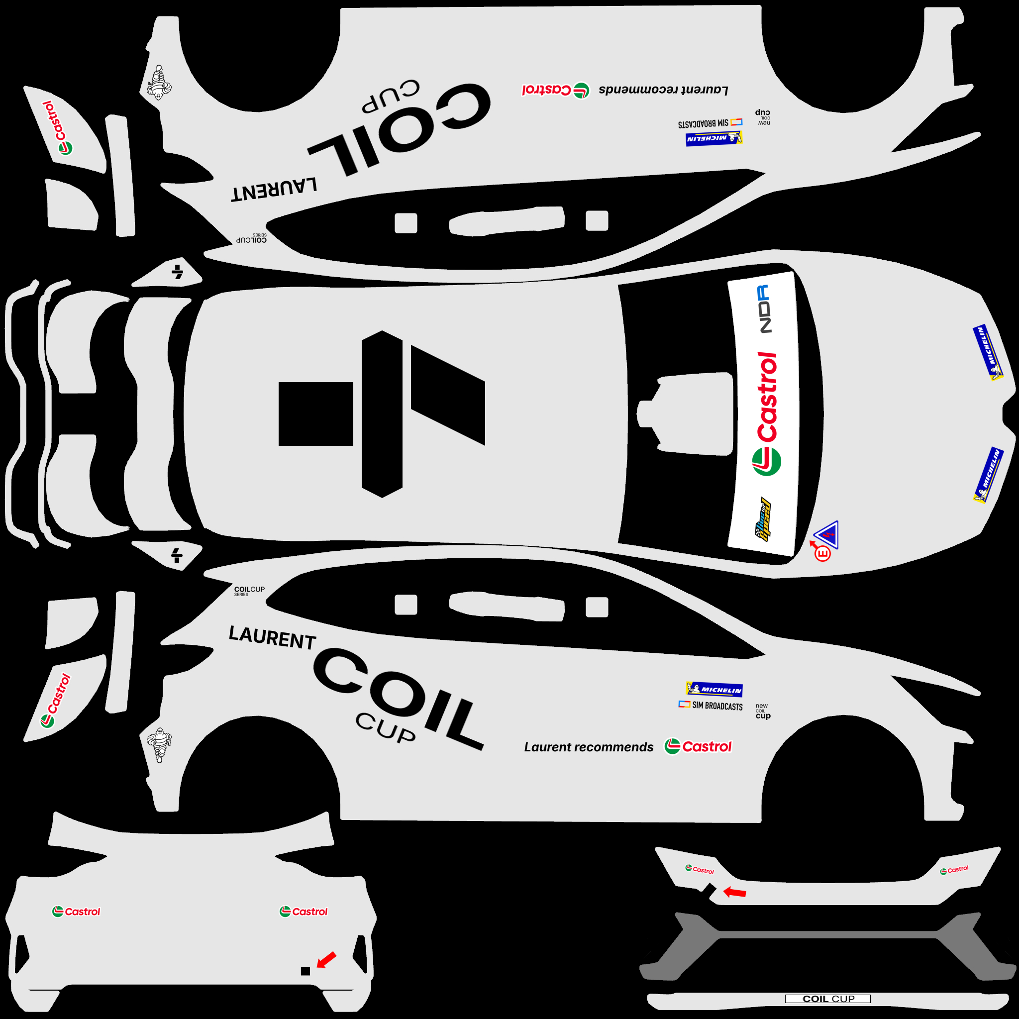 The LFS Vehicle editor provides options to create skin templates. A template helps you create skins for a vehicle by giving you the outlines of the vehicle's shape, within which you can draw the livery that will be drawn onto the vehicle.