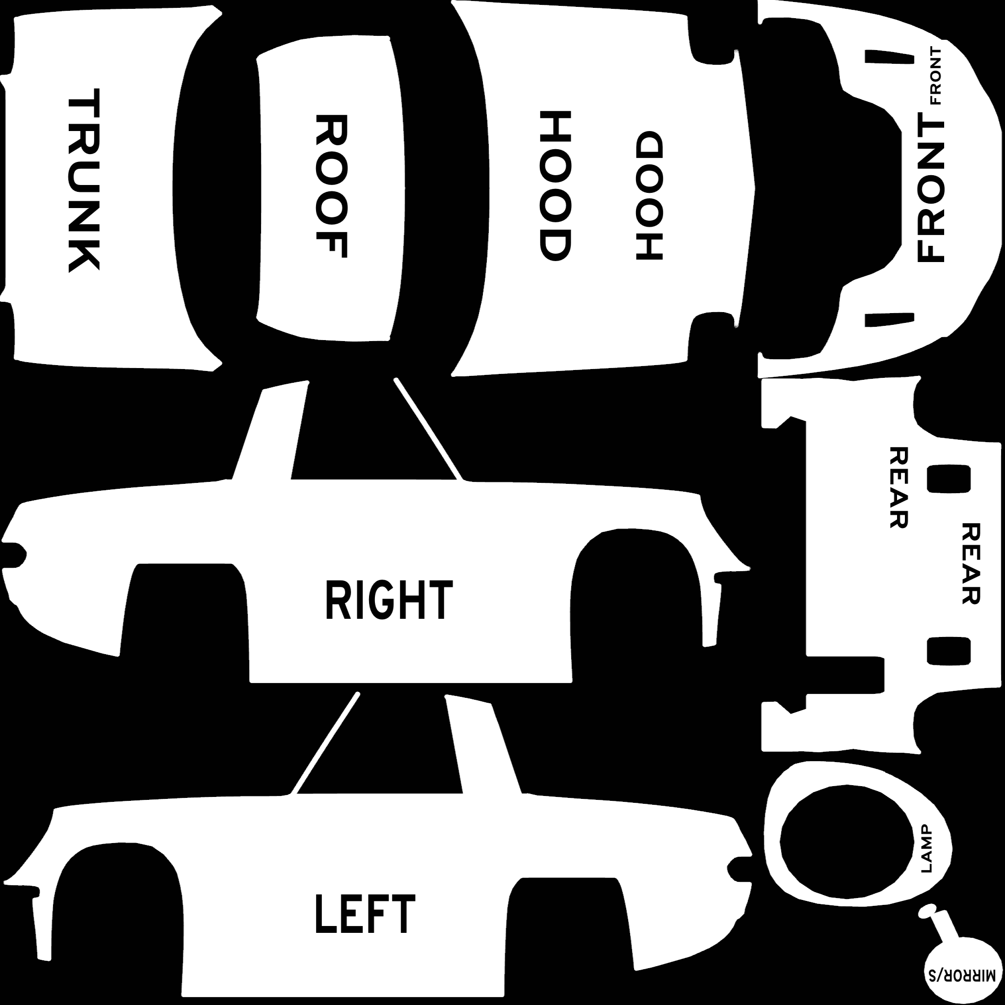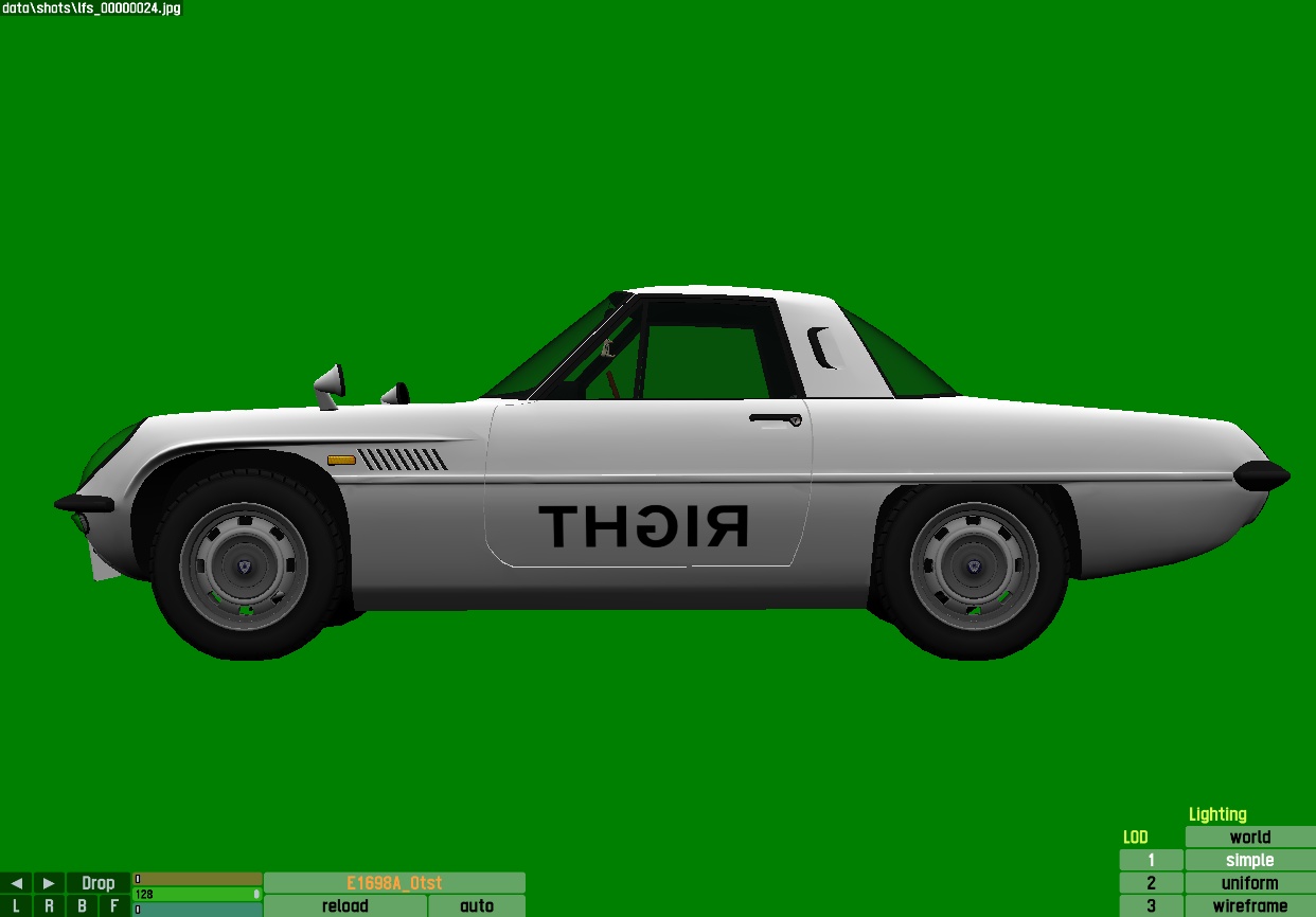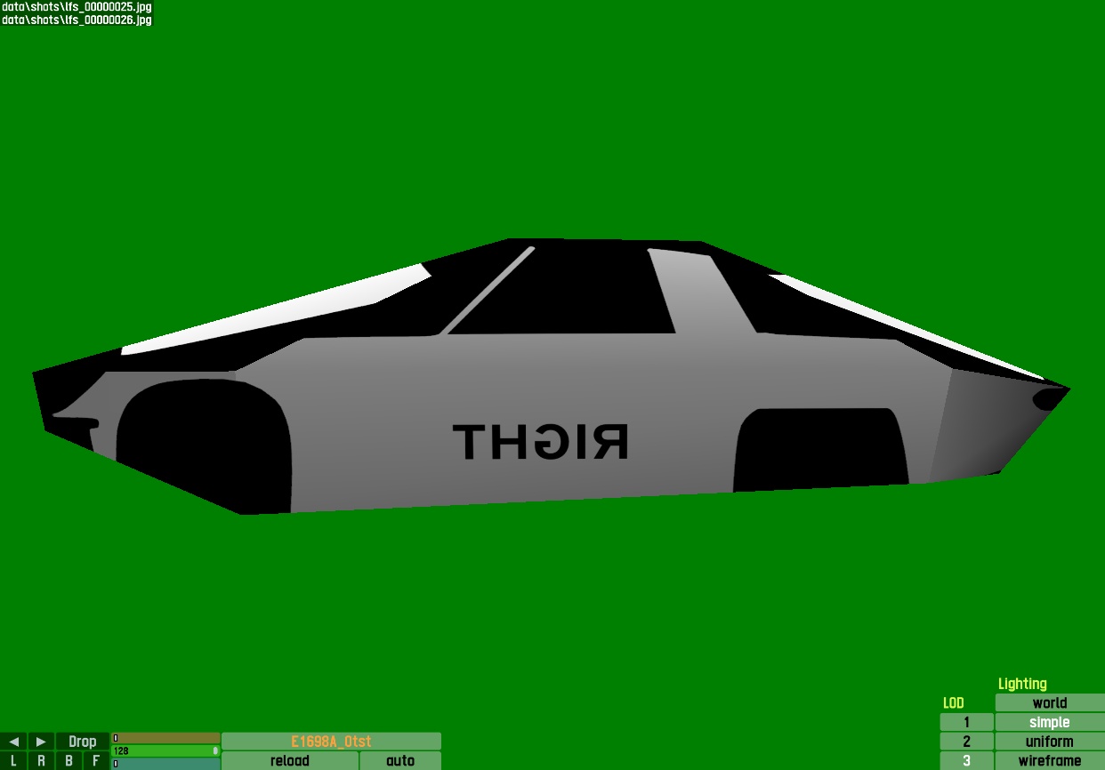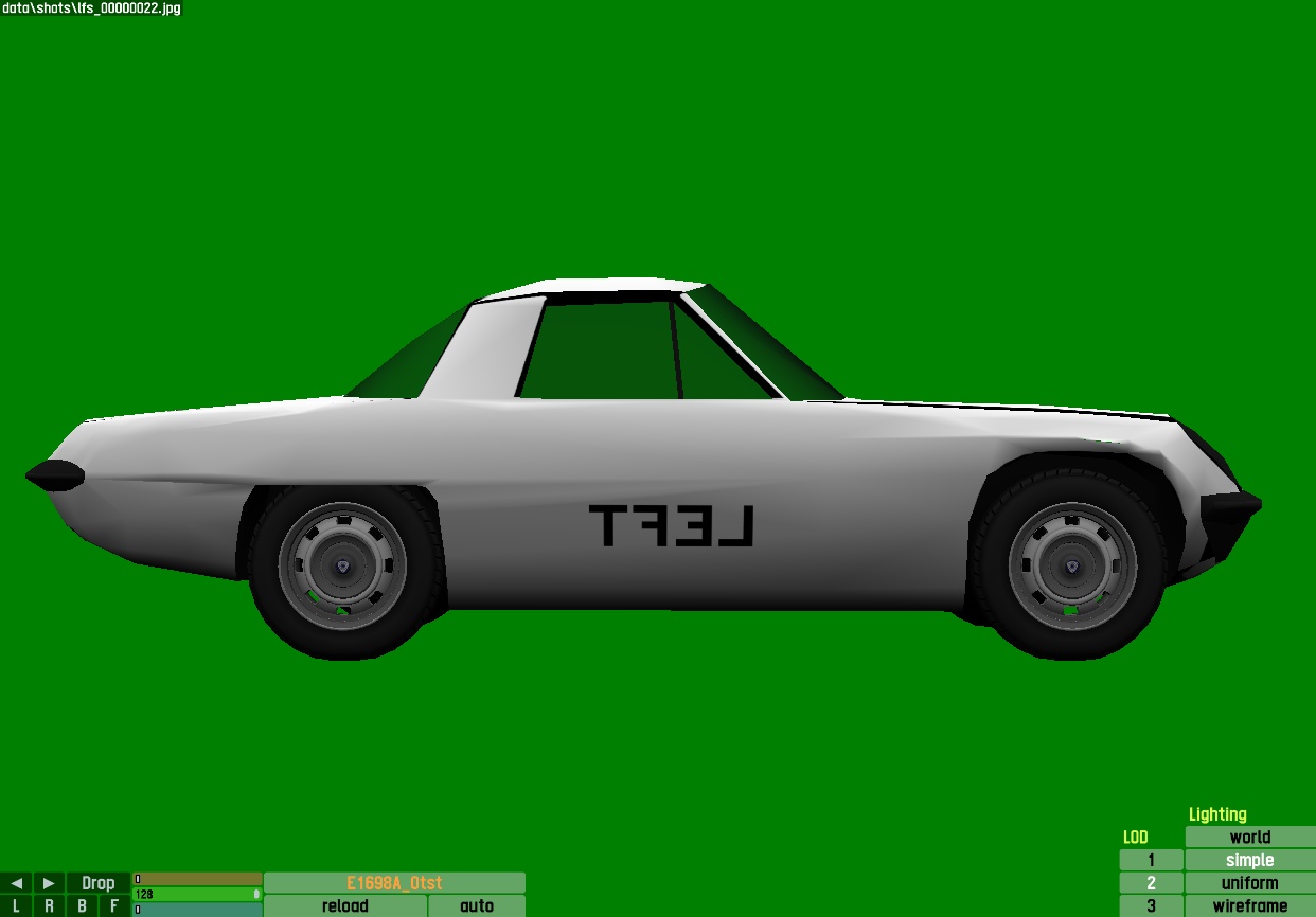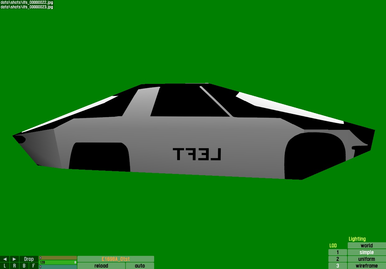 The LFS Vehicle editor provides options to create skin templates. A template helps you create skins for a vehicle by giving you the outlines of the vehicle's shape, within which you can draw the livery that will be drawn onto the vehicle.
