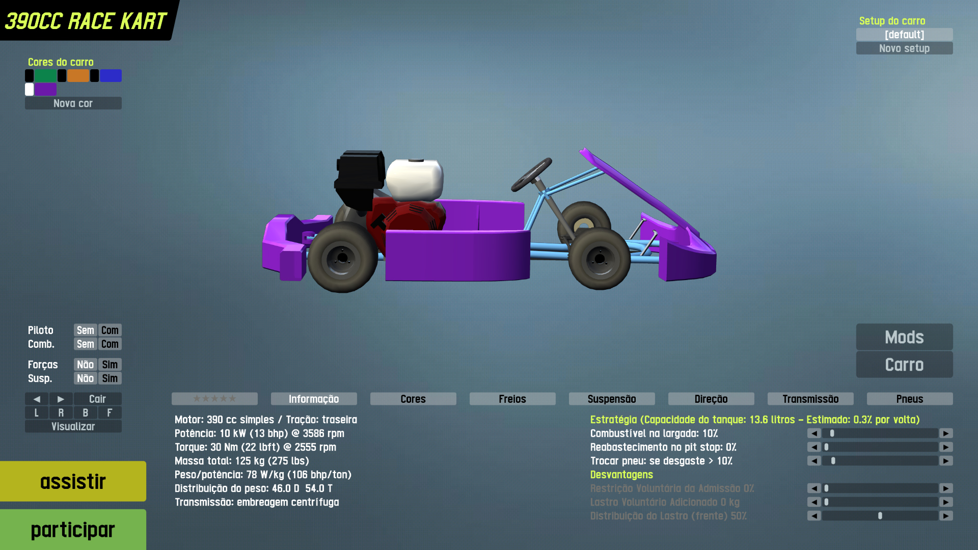 kart with 13hp 390cc four-stroke engine, using 11 x 7.10 - 5 in the rear and 10 x 4.60 - 5 in the front
