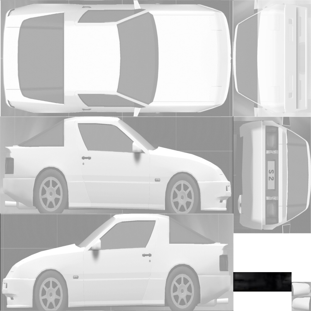 The LFS Vehicle editor provides options to create skin templates. A template helps you create skins for a vehicle by giving you the outlines of the vehicle's shape, within which you can draw the livery that will be drawn onto the vehicle.