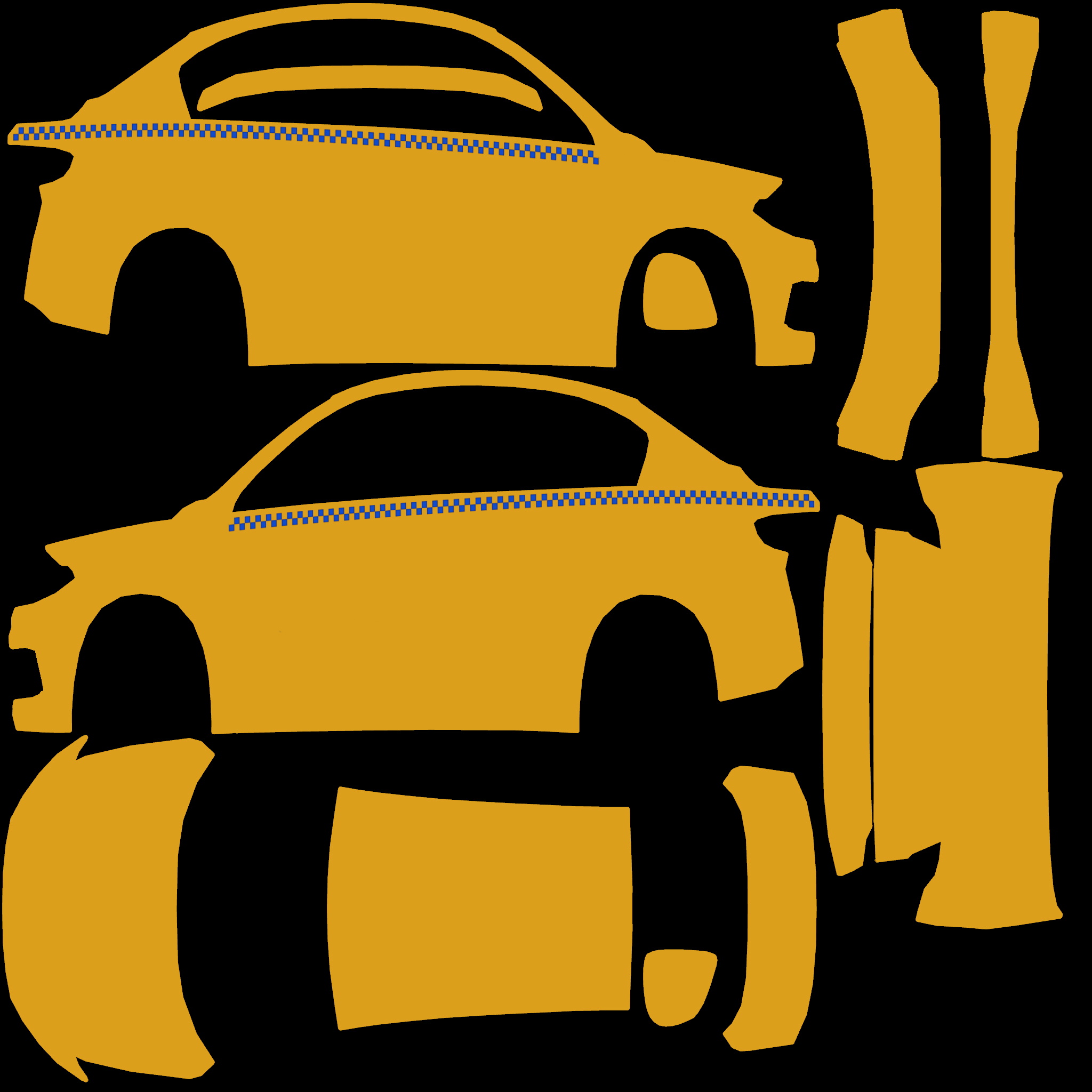 The LFS Vehicle editor provides options to create skin templates. A template helps you create skins for a vehicle by giving you the outlines of the vehicle's shape, within which you can draw the livery that will be drawn onto the vehicle.