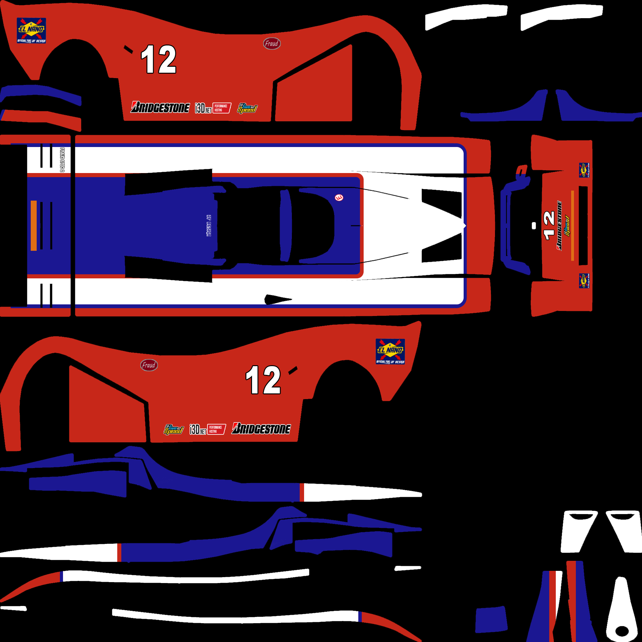 The LFS Vehicle editor provides options to create skin templates. A template helps you create skins for a vehicle by giving you the outlines of the vehicle's shape, within which you can draw the livery that will be drawn onto the vehicle.