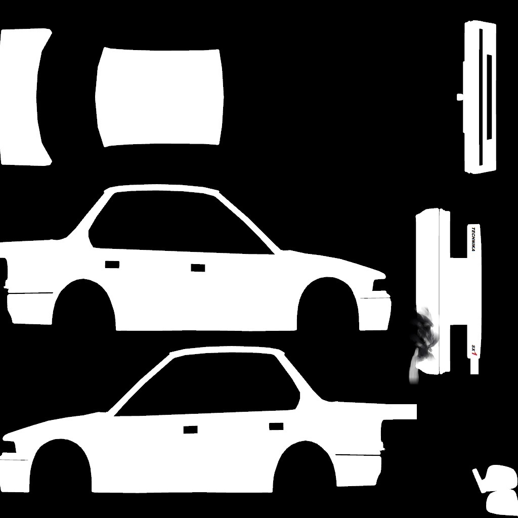 The LFS Vehicle editor provides options to create skin templates. A template helps you create skins for a vehicle by giving you the outlines of the vehicle's shape, within which you can draw the livery that will be drawn onto the vehicle.