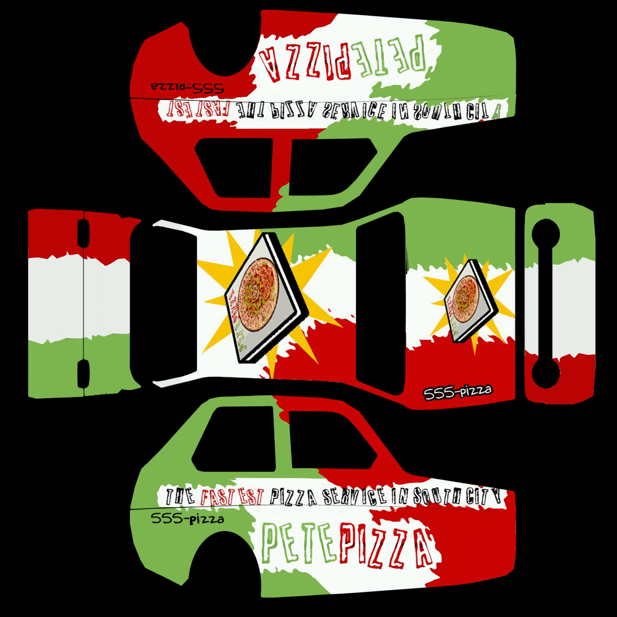 The LFS Vehicle editor provides options to create skin templates. A template helps you create skins for a vehicle by giving you the outlines of the vehicle's shape, within which you can draw the livery that will be drawn onto the vehicle.