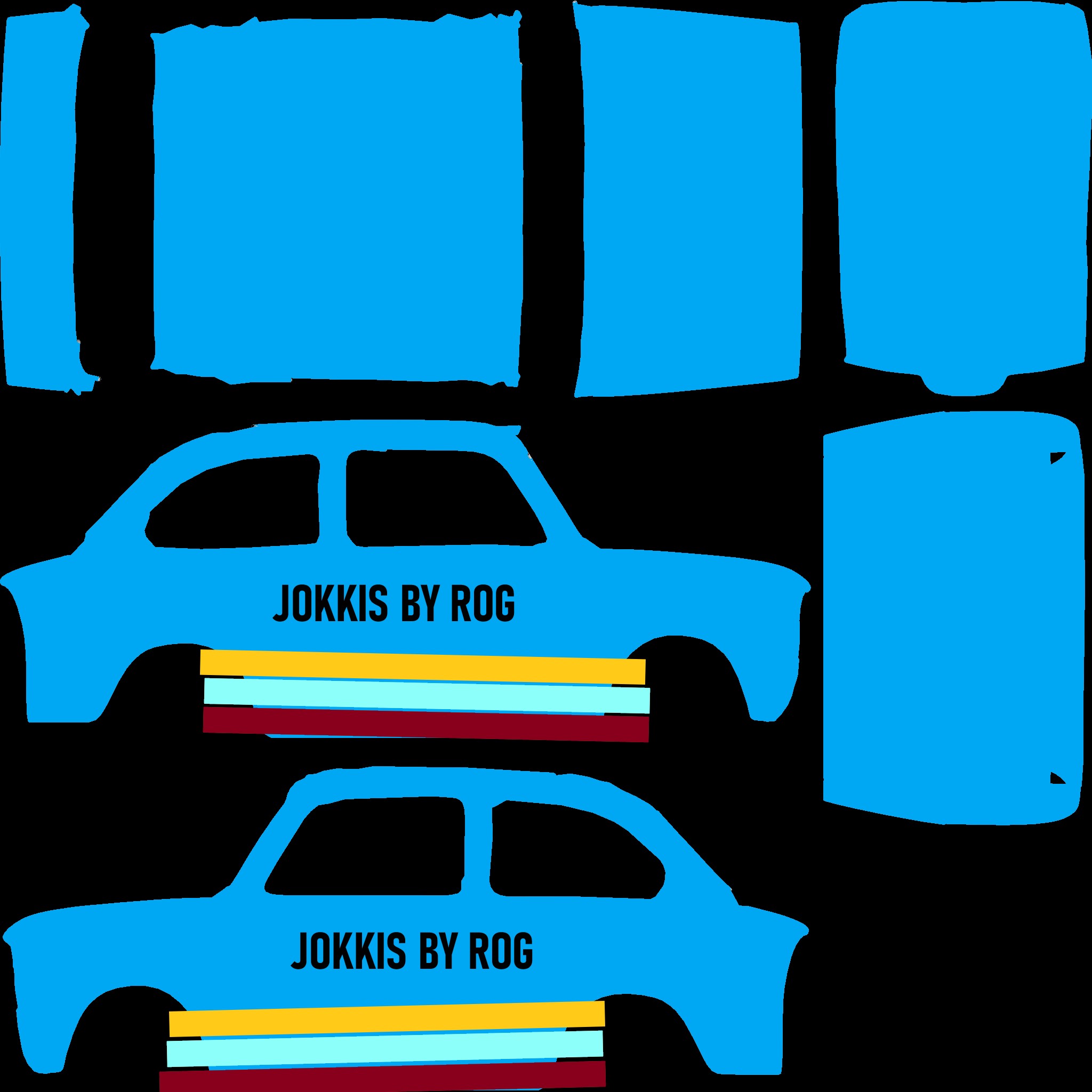 The LFS Vehicle editor provides options to create skin templates. A template helps you create skins for a vehicle by giving you the outlines of the vehicle's shape, within which you can draw the livery that will be drawn onto the vehicle.