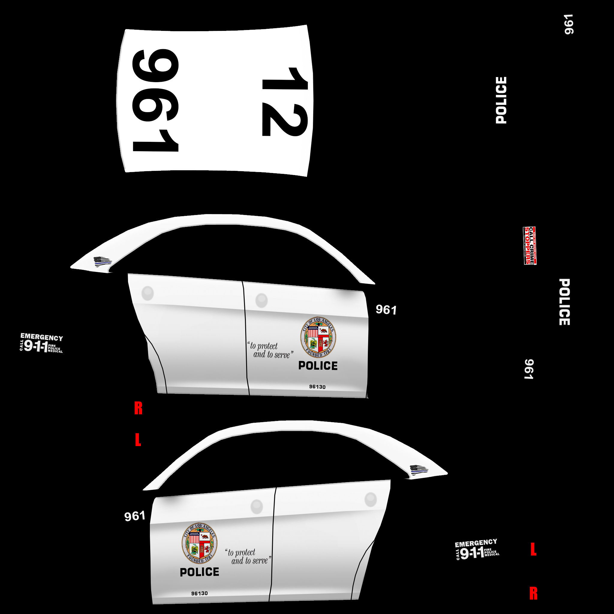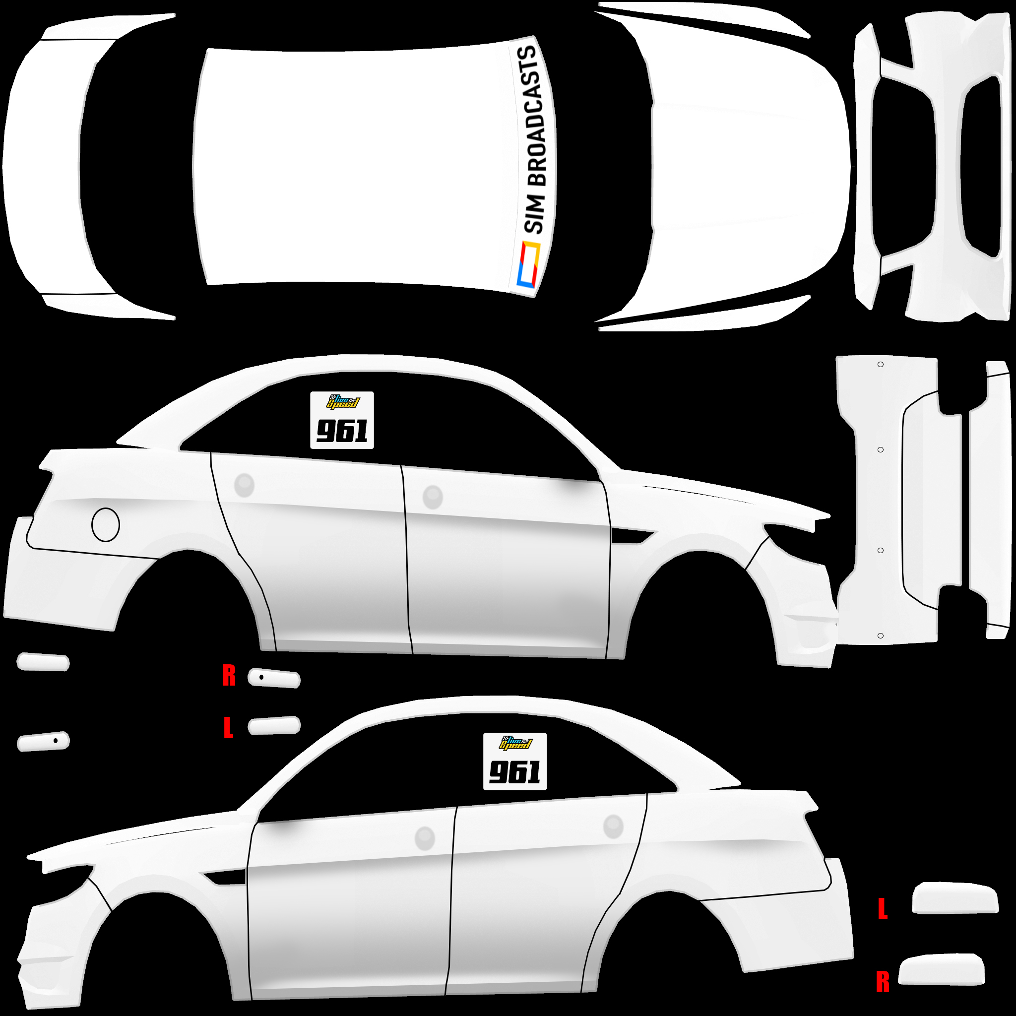 The LFS Vehicle editor provides options to create skin templates. A template helps you create skins for a vehicle by giving you the outlines of the vehicle's shape, within which you can draw the livery that will be drawn onto the vehicle.