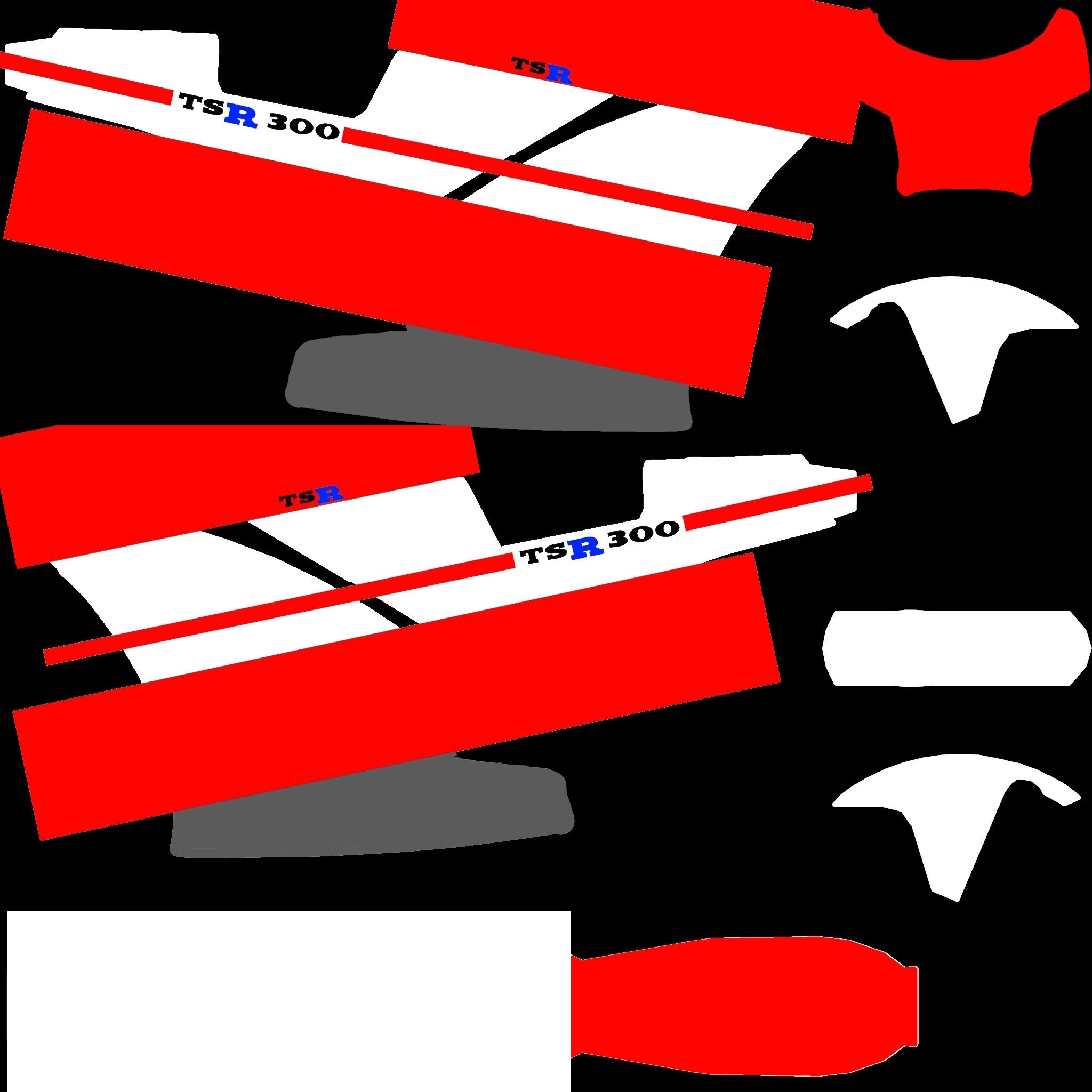 The LFS Vehicle editor provides options to create skin templates. A template helps you create skins for a vehicle by giving you the outlines of the vehicle's shape, within which you can draw the livery that will be drawn onto the vehicle.
