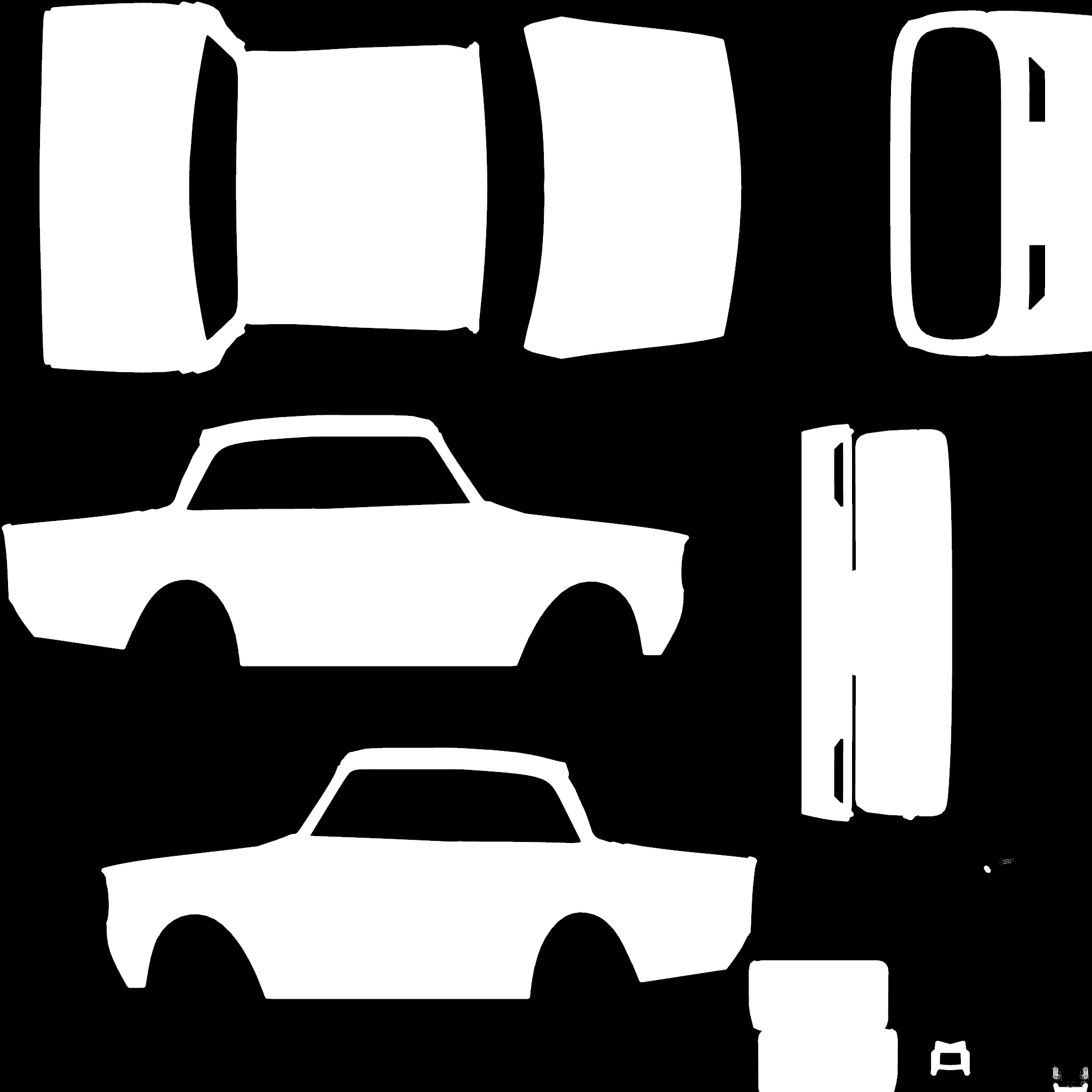 The LFS Vehicle editor provides options to create skin templates. A template helps you create skins for a vehicle by giving you the outlines of the vehicle's shape, within which you can draw the livery that will be drawn onto the vehicle.