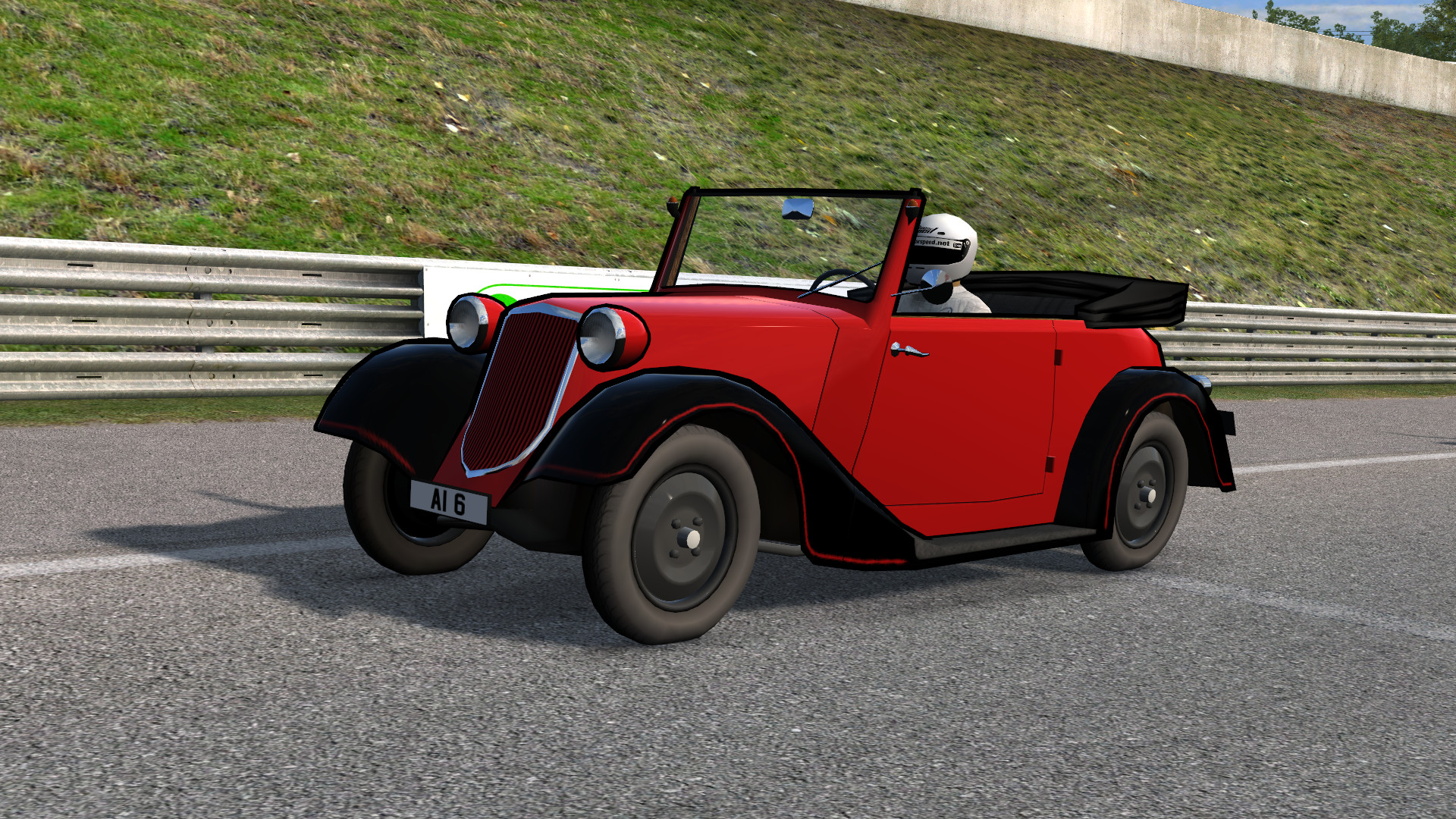 It is definitely not the fastest LFS mod out there, but should be physically accurate. Because of the independent suspension, this is one of a few 1930s cars which can be simulated in the LFS, without some rough approximations of solid axles. Springs were stiffened a little to approximate leaf springs and the engine had to be downsized from original 1155cc to 900cc to reduce torque. The force feedback should be set to 100 for a realistic experience. The original car had a steering wheel on the right side, but the mod enables both configurations. The double-clutch technique should be deployed when down-shifting, because the gearbox is not synchronized. The first gear is reduced.