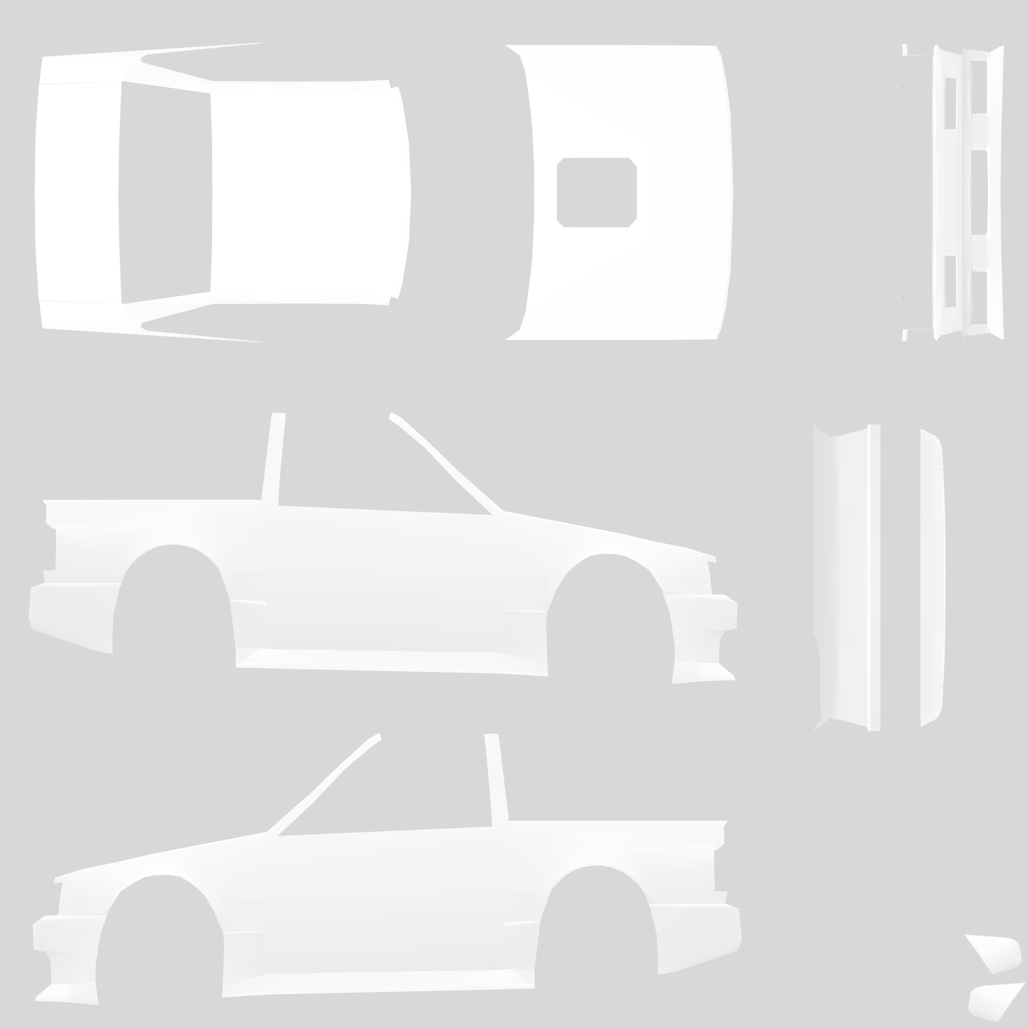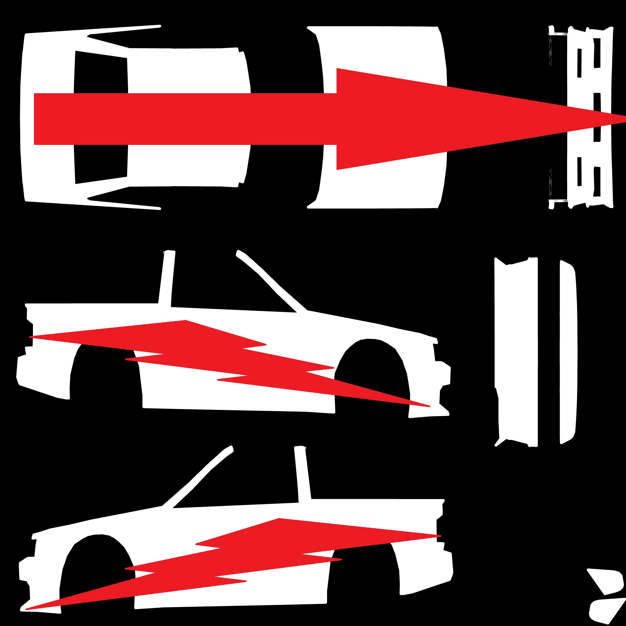 The LFS Vehicle editor provides options to create skin templates. A template helps you create skins for a vehicle by giving you the outlines of the vehicle's shape, within which you can draw the livery that will be drawn onto the vehicle.