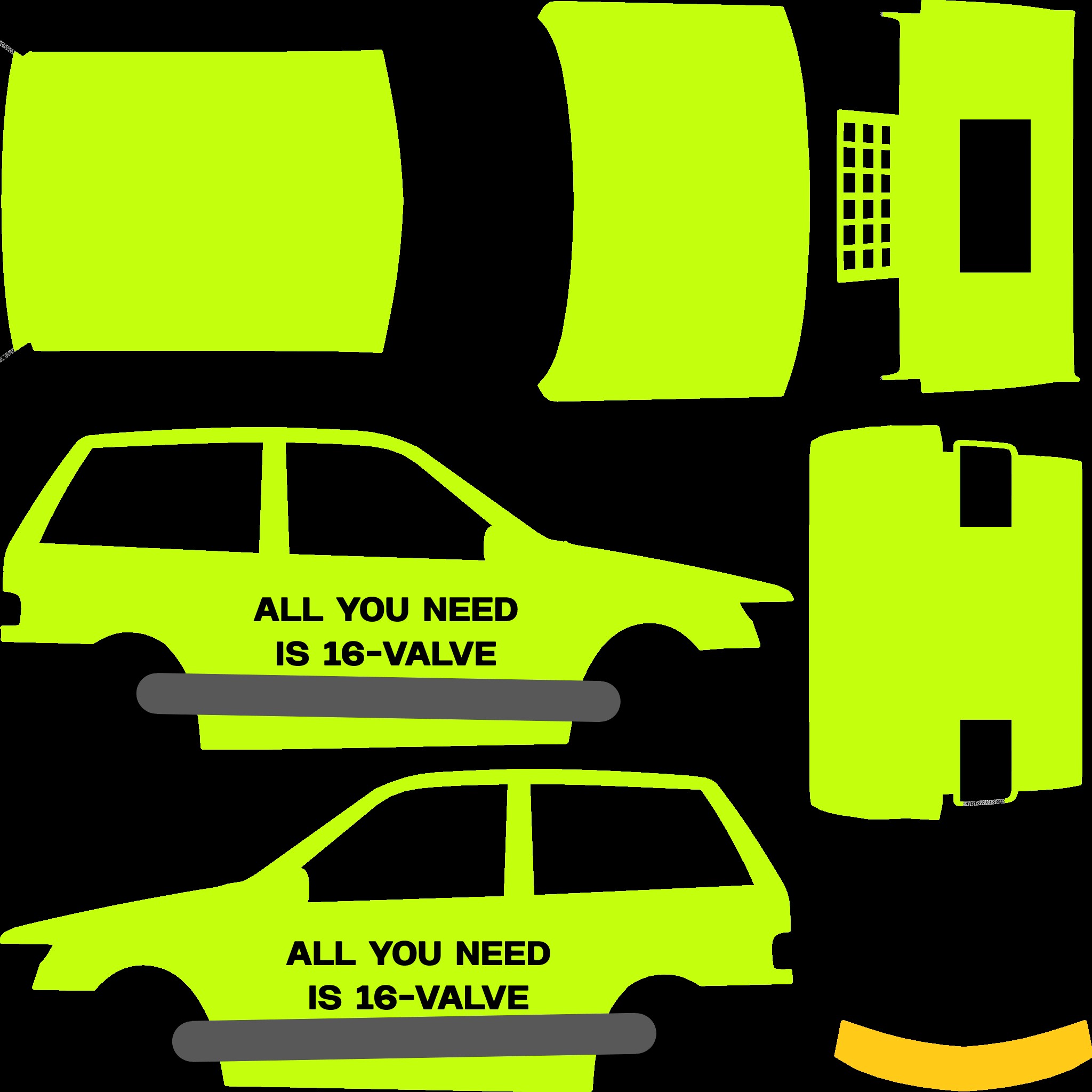 The LFS Vehicle editor provides options to create skin templates. A template helps you create skins for a vehicle by giving you the outlines of the vehicle's shape, within which you can draw the livery that will be drawn onto the vehicle.