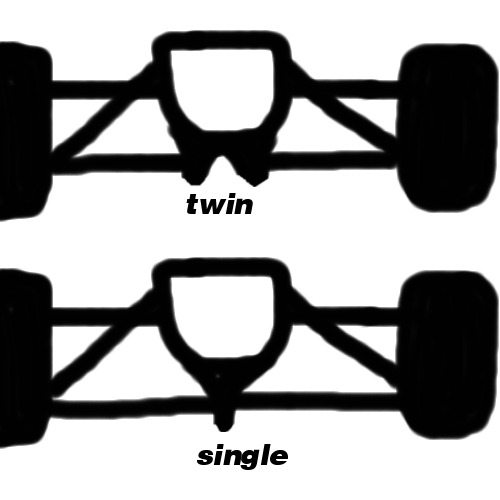 Well, the suspension has to hang on the car. That can be a single keel (?) or a twin keel. I think Tristan uses twin keel because otherwise the whole suspension of the FOX should be editted.