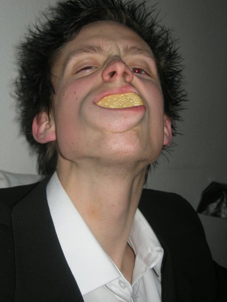 Quote from The Very End :Ok, so this happens when alchohol hits 'ya body. Picture one - have a wild guess who's me. Picture two - who the hell made the "turn around cookie in mouth game?!" Can I have any one of those girls' number? :jawdrop: Maybe if I was a spikey hair wearing Norweigen like you I'd have all the girls too.