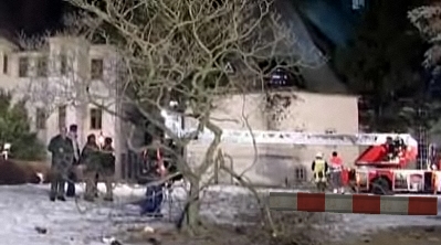 Looking at the video, he's lucky he *was* going that fast, otherwise he'd have hit the stone wall instead of the wooden roof. I imagine given the age of the building that the wall is a couple of feet thick.