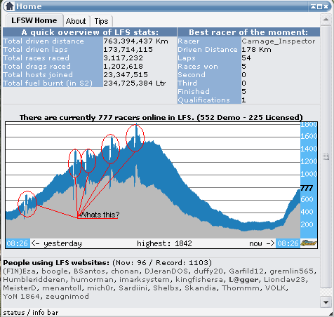 Wow... i don't know if the couse of it is this add in MTV3 about LFS, but recently number of demo players have jumped from around 500 to over 800! Niceeee and those spikes are happen mostly on demo accounts .