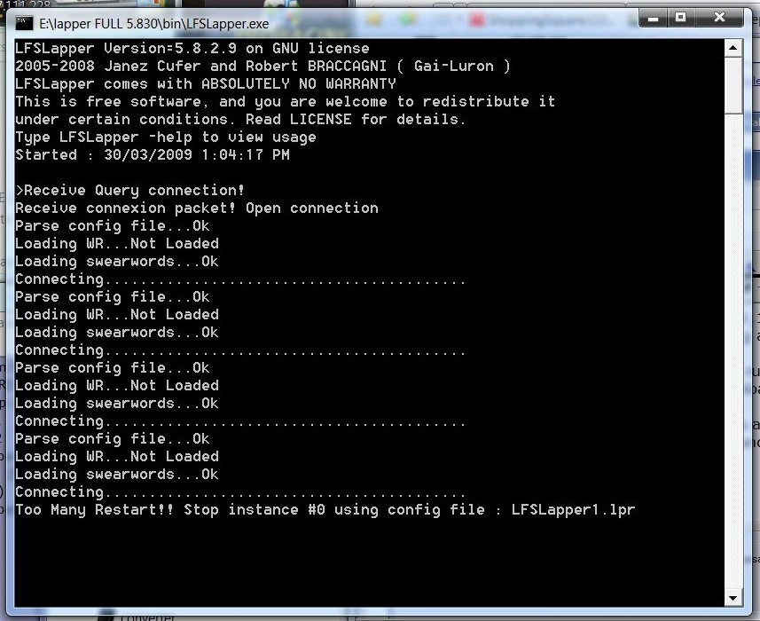 What message have you? Do you change the LFSServer.cfg file to match with your server