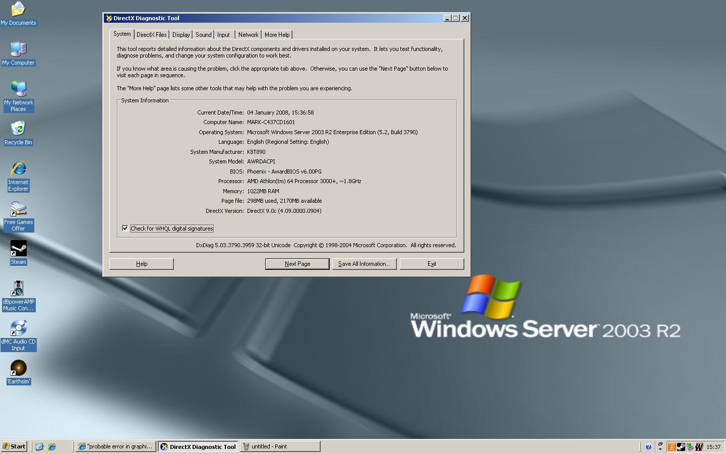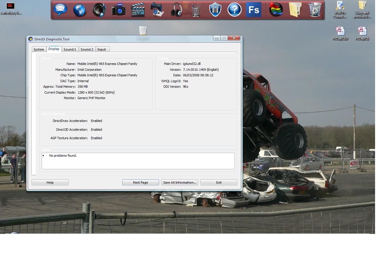 Go to the Display tab on dxdiag. Is Direct3D enabled, or does it say "Not Available"?