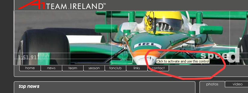 I have attached a screenshot of what i mean. You'll see the flash element is highlighted with a grey boarder and it says click here to activate.