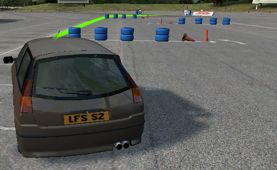 In this lesson if you turn left after the 4th cone after the start line, and go straight to the finish, the lesson will be valid. It should be fixed. See the attachment.