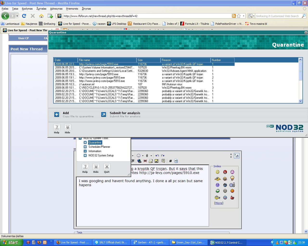 I was googling and havent found anything. I done a all pc scan but same hapens. Im using Nod 32