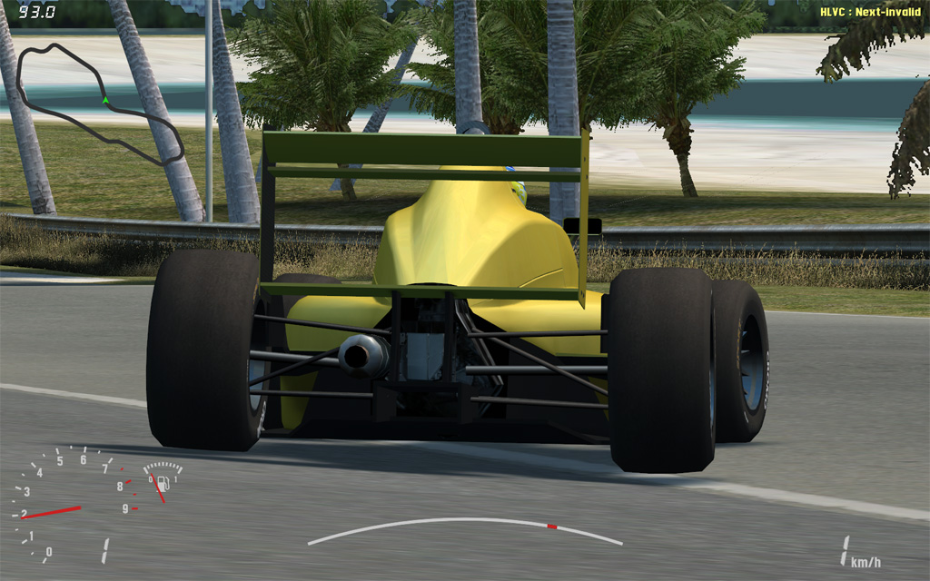 I never seen such thing happen during any formula race, so i wonder whether it is realistic. If such a hole was in a real track they would fix it before allowing formula cars racing on it. formula cars in such slides happily bounce all over the place, track or gravel trap, and then continue to race if they didn't hit the wall or something like that.