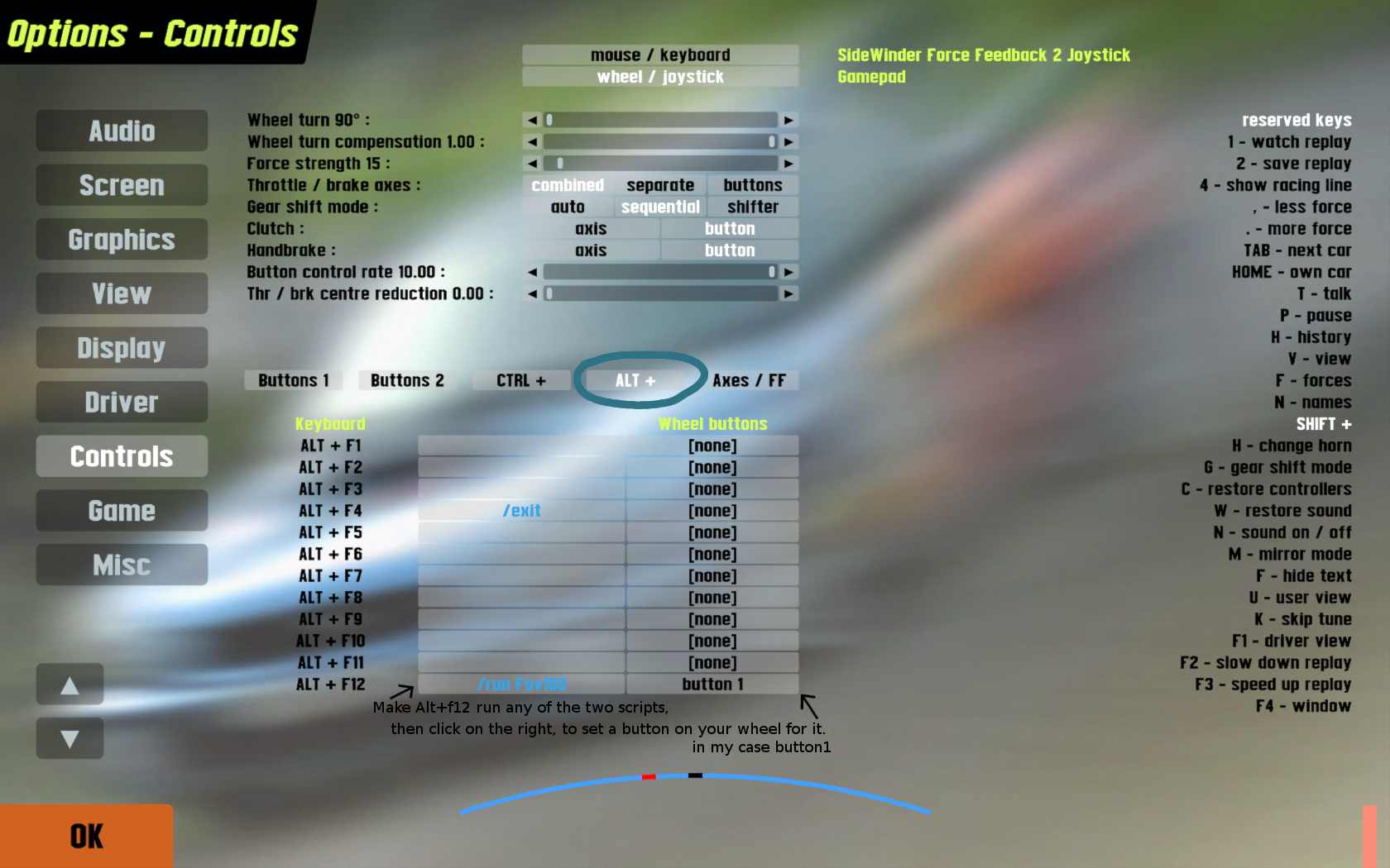 I was thinking if it could ever be possible to assign a DFGT button to a function, a script, or whatever, in order to switch between 2 horizontal FOV presets, to widen the view in special cases like T1 after the start and so on...