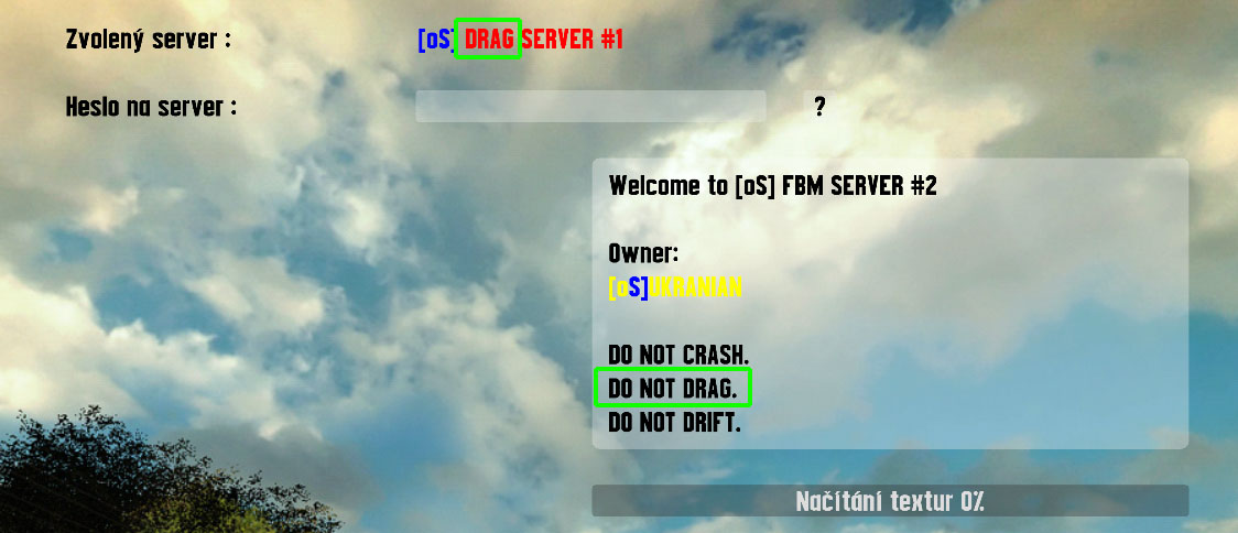 Quote from hazaky :Photoshopped? ... I dont get it I meant that it's a drag server and there is a rule "NO DRAG". The "Welcome to FBM server..." is not important, I was in the server and they were dragging so...