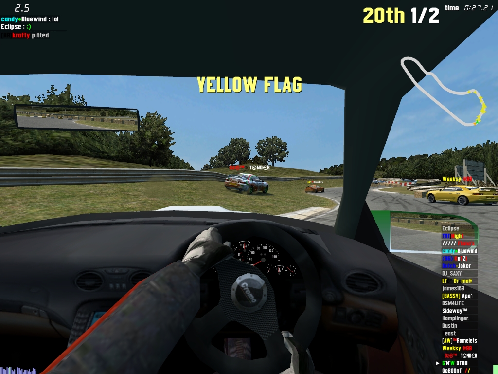 I tabbed out of LFS, started taskman, went back into LFS and started the 20 car race, then paused it at T1 where i crashed because it was a slideshow and impossible to drive properly, and then i print screened it.