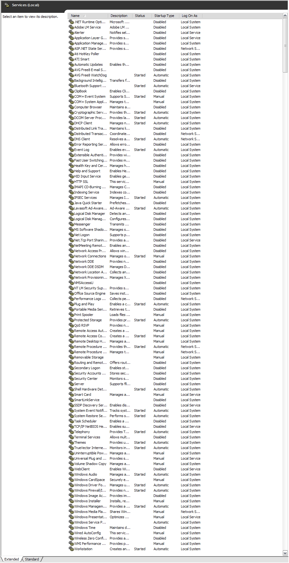Post a list of the msconfig startup tab, running processes and active services(services.msc).