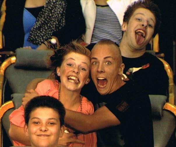 Well it looks like he is on a rollercoaster and posing at the part where the camera takes the photo. Interesting choice of pose I must say. It seems that the insane lizard pose is coming back into fashion.