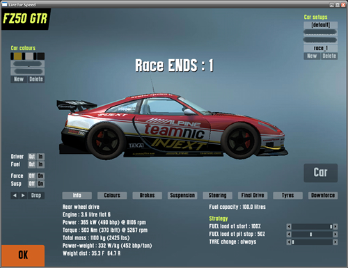Hey! I wanted to point out that whenever I was playing in practice, and then exited and went to the car setup screen, the Race Ends: 1 message comes up. I just thought to point it out.