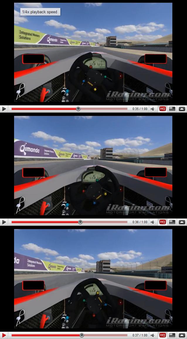 If you look at the attached screenshot, you can see that the car is yawing once again to the right. Look at the aerial on the front compared to the buildings. If I hadn't countersteered 36.5 seconds in, I'd have just span to the right.