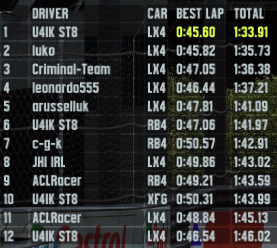 The track is limited to 4 cars because it being 2 laps it can get messy with a lot of cars on track. Drivers on the start line (behind the "Keep Left" signs in the screenshot) are the ones who should make sure they don't drive into someone starting their second lap. Then when you finish your run please spectate to give other drivers a run. (If anyone knows how to increase the start countdown could you tell me please because I can't find anything in the "Commands" text document or anywhere else, thanks.)