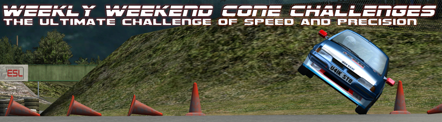 Cone Challange: Complete 2 laps in the fastest time possible. Each cone hit adds 2 seconds to your final time. Gates are 4 meters wide and random distances apart. Most gates are on the racing line, but there are a few stray gates that will catch you out over and over again, but this is a challenge, it wasn't made to be easy!