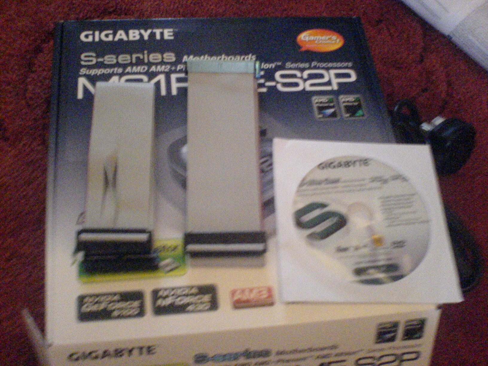 The 2 spare cables with the mobo are floppy drive cable and PATA cable for older HDDs/ROMs.