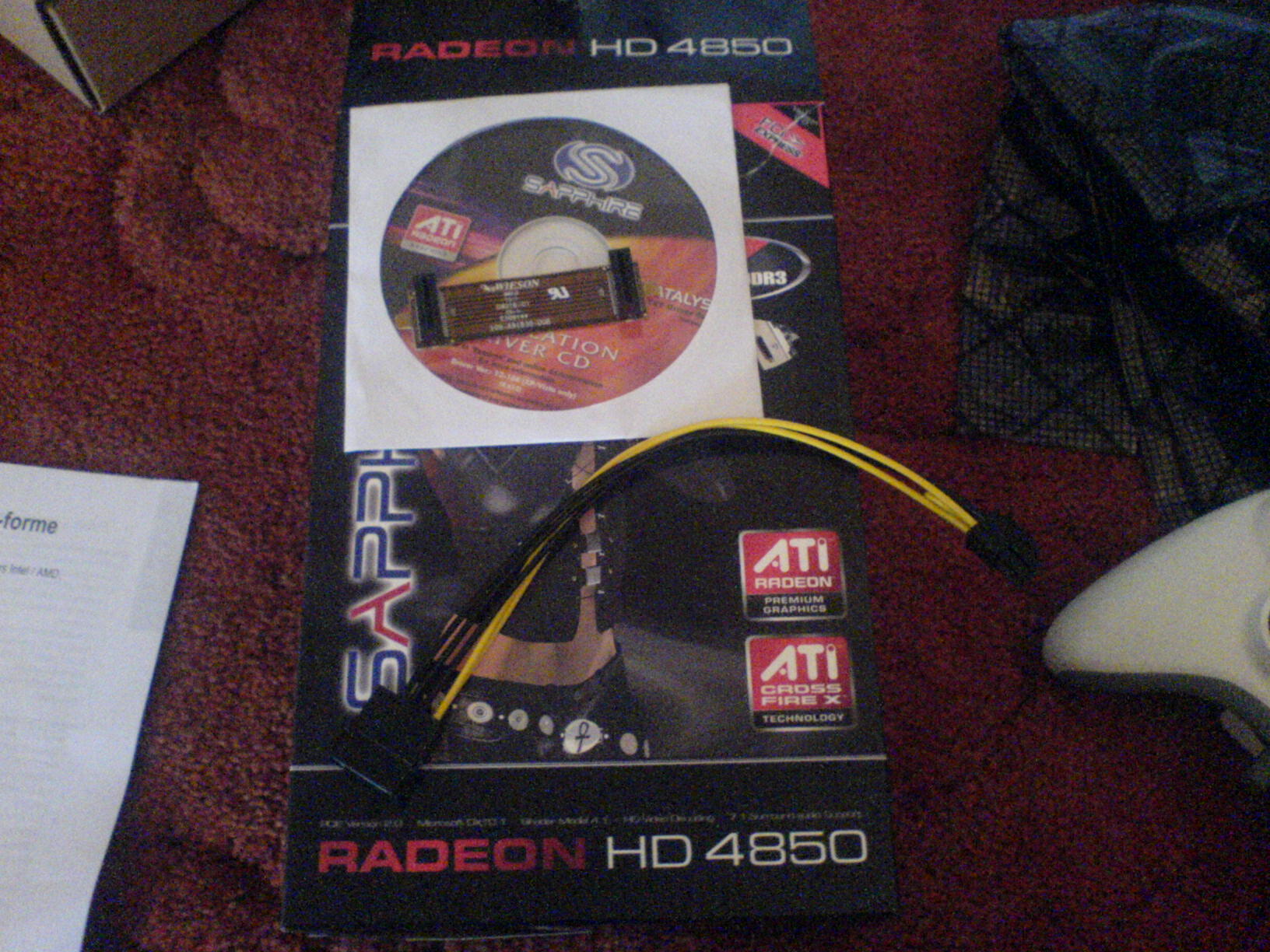 The things with the GFX card are a power cable (long one) and what looks like a Crossfire cable for if you had 2 cards.