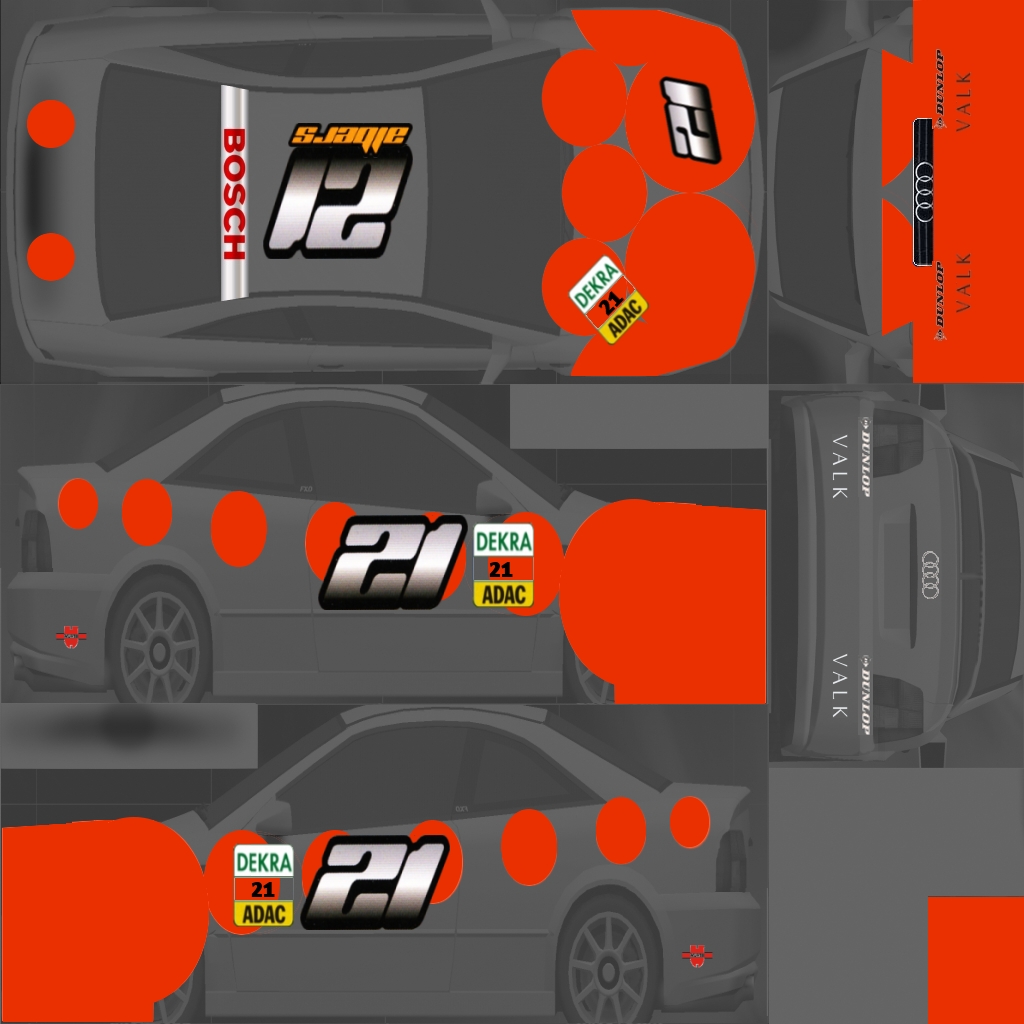 This is another of my familiar skins!! Skin files included, although you will have to change the name on the side. Please don't change anything else though - it would be nice just to see some of my designs running around the track unadultered