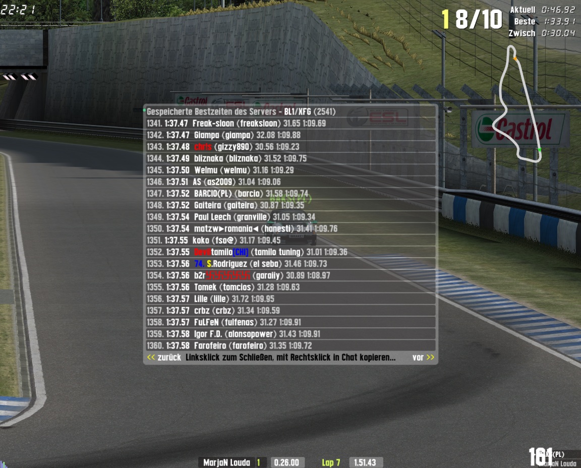 The XRG front of me is trying to closing inside line with moving weirdly early on me (as he did in lap 3/last corner), and sweared to all of us after I said "thanks". I know well that barge passing is something delicate. But I had no chance to avoid this unexpected move.
